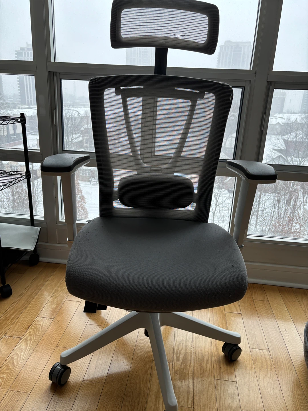 Selling an Autonomous ergonomic office chair. It's in good condition with a few signs of wear on the armrests, as shown in the pictures. This chair is super comfortable and provides great support for long workdays!