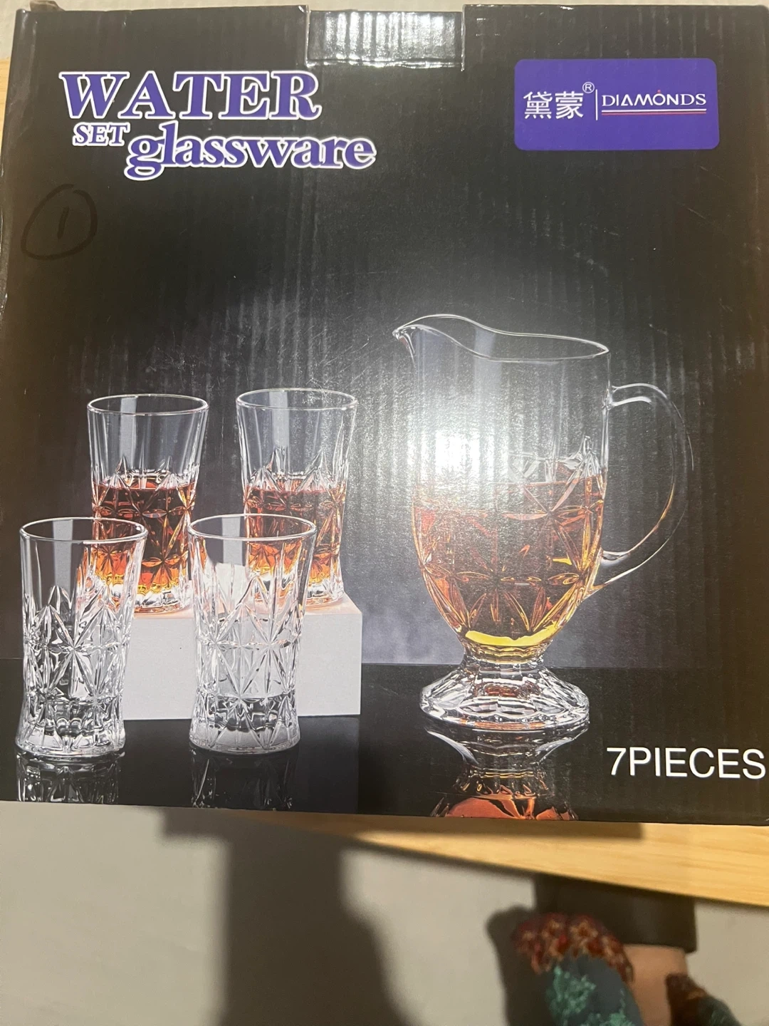 Selling a brand new Diamonds water set glassware. It comes with 7 pieces (1 glass jug and 6 drinking glasses). It is still in its original box. Perfect for your dining table or as a gift!