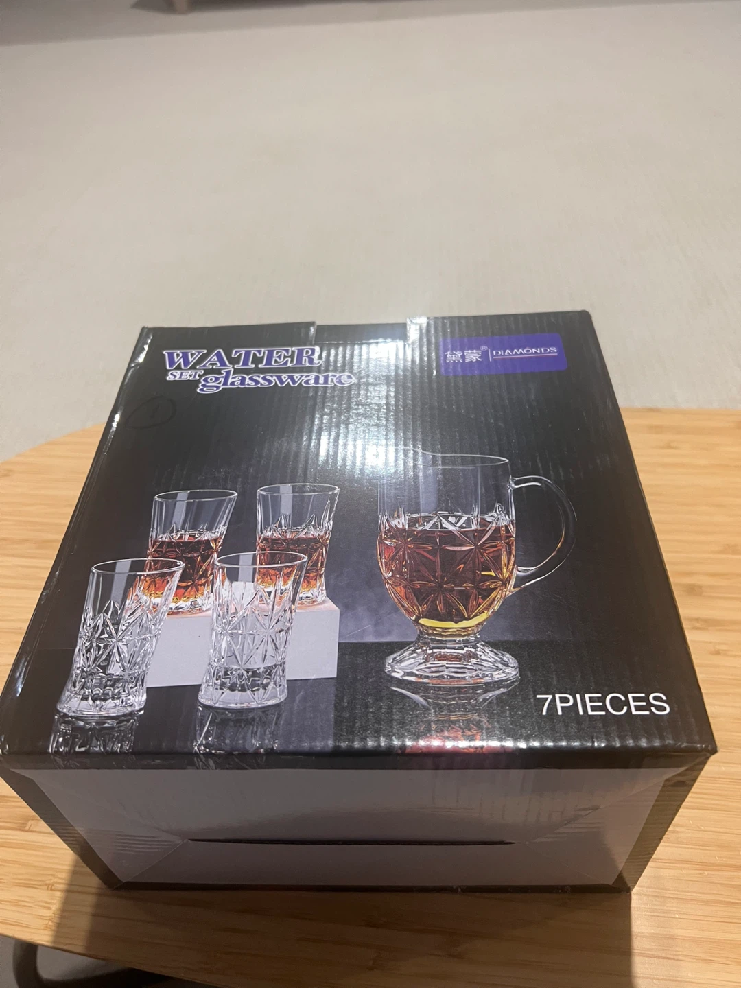 Selling a brand new Diamonds water set glassware. It comes with 7 pieces (1 glass jug and 6 drinking glasses). It is still in its original box. Perfect for your dining table or as a gift!