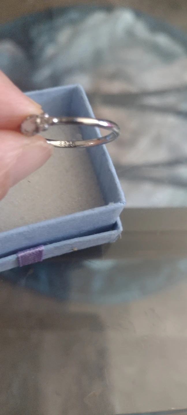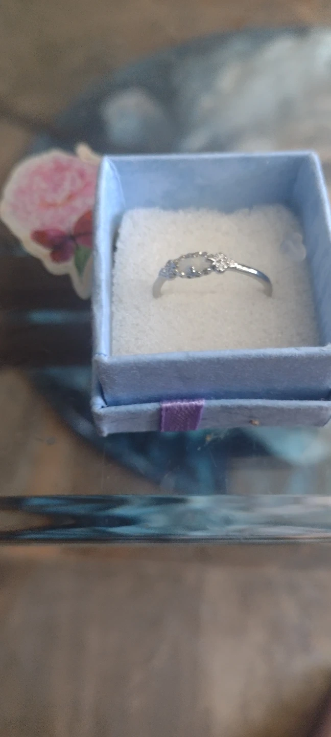 This delicate Sterling Silver ring features a subtle design with clear stones. It comes in a light blue jewellery box, ready for gifting or safekeeping. A lovely accessory for everyday wear or special occasions!