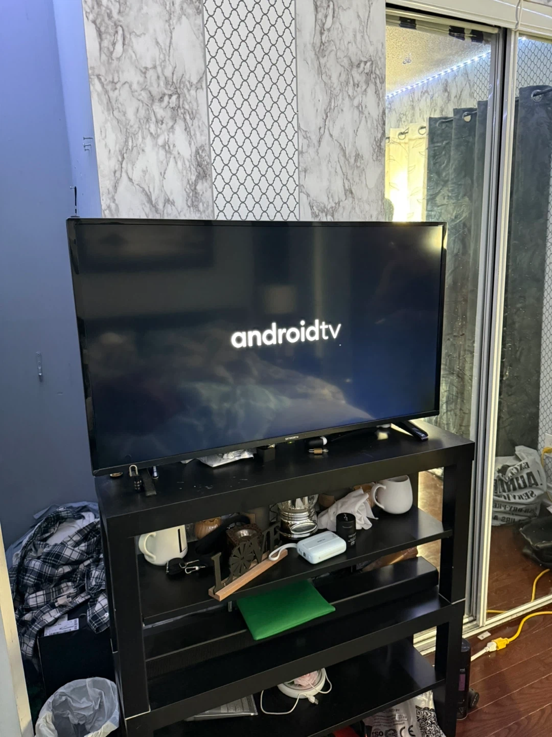 This is a 40 inch smart television. It runs on the Android TV platform, offering access to various streaming apps. and has a sleek design. It is in perfect condition also has original box