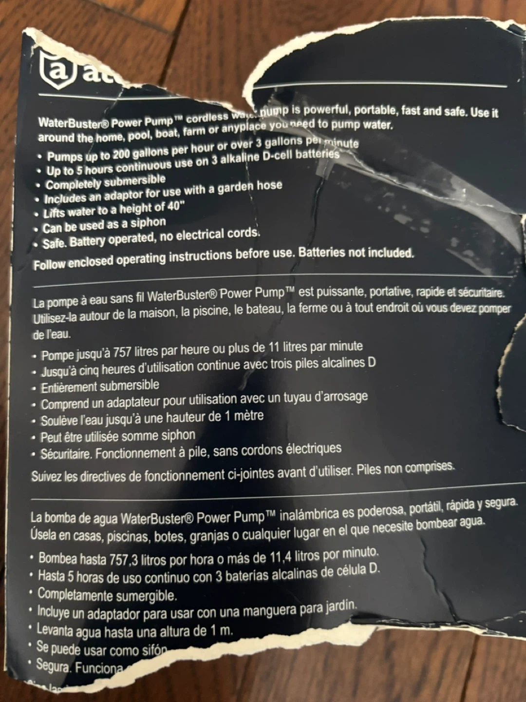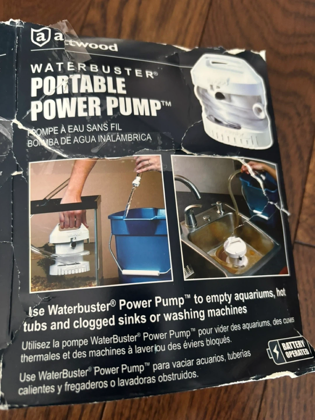 This Attwood WaterBuster Portable Power Pump is compact and submersible. It pumps up to 200 gallons per hour or over 3 gallons per minute. Includes a garden hose adapter.