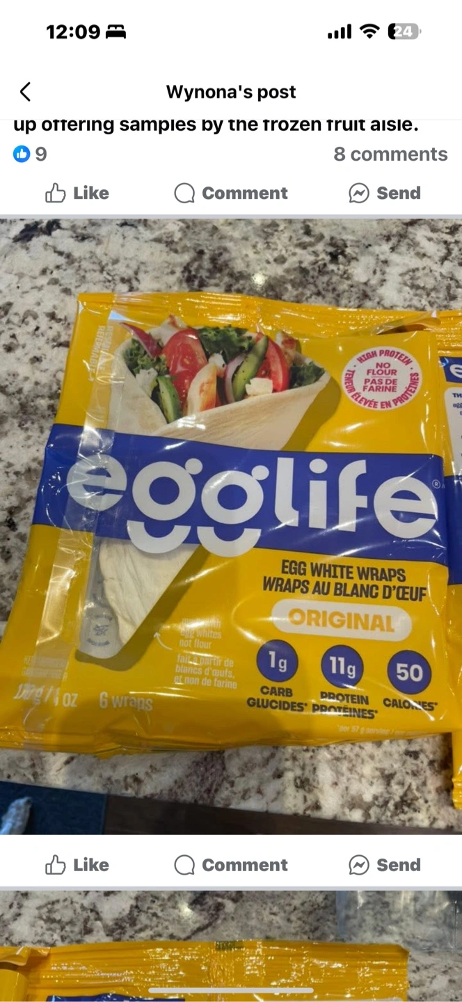 Selling Egglife Original Egg White Wraps! These wraps are a great alternative to tortillas and are gluten and flour free. Each wrap contains 1g of carbs, 11g of protein, and 50 calories. They are perfect for a quick and healthy meal or snack!