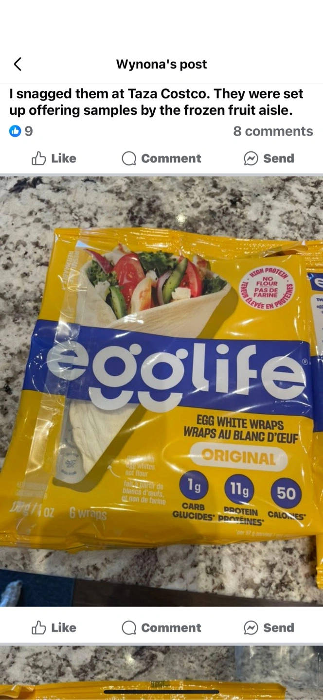 Selling Egglife Original Egg White Wraps! These wraps are a great alternative to tortillas and are gluten and flour free. Each wrap contains 1g of carbs, 11g of protein, and 50 calories. They are perfect for a quick and healthy meal or snack!