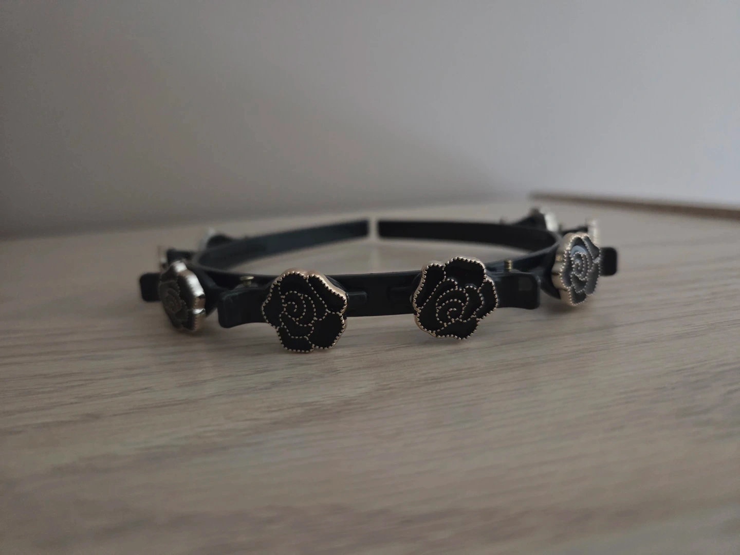 Black Headband with Rhinestone and Rose Embellishments