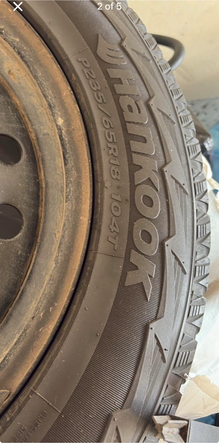 Hankook winter tires. Size P235/65R18 104T. They're in good condition. They're great for winter driving!