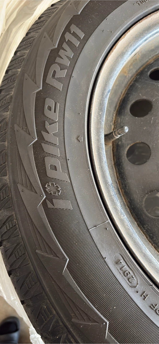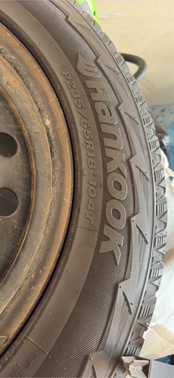 Hankook winter tires. Size P235/65R18 104T. They're in good condition. They're great for winter driving!
