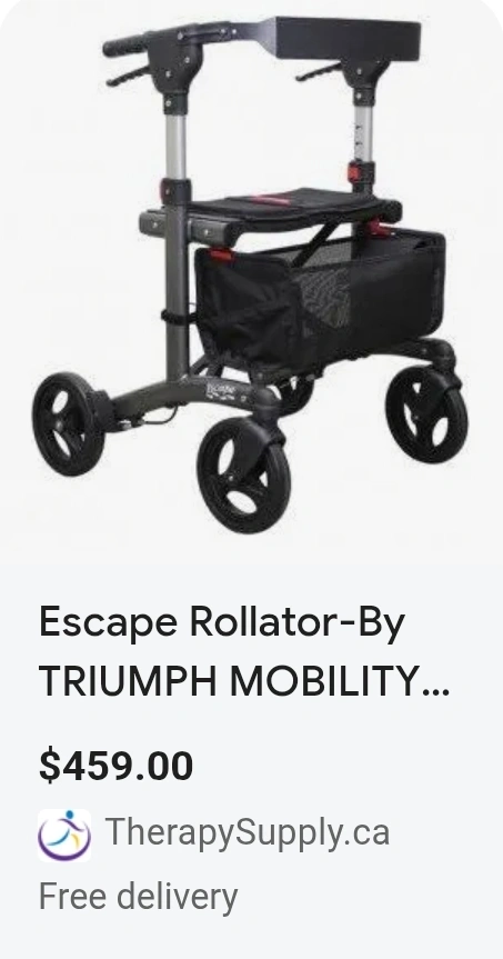Selling a used Escape rollator walker. It features a comfortable seat and a handy basket for carrying items. Great for anyone needing a bit of extra support while getting around!