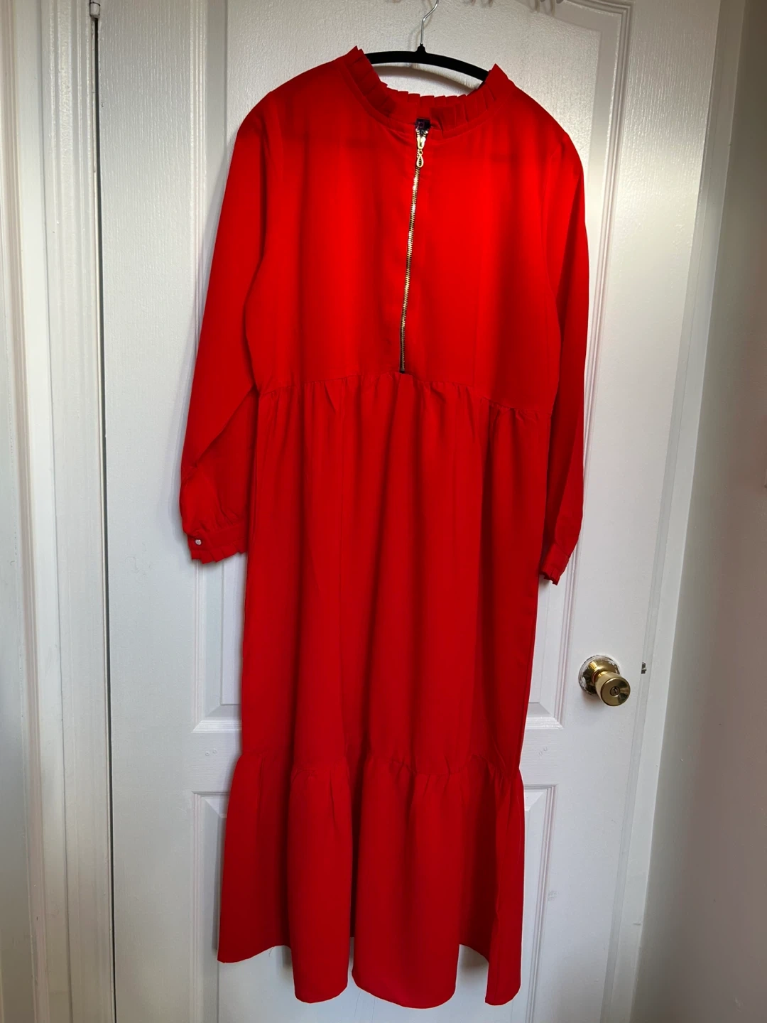 Buy & SellRed Solid Maxi dressRed Solid Maxi dress$20A lovely red dress with long sleeves! It features a zipper down the front and ruffled details on the sleeves and bottom. Perfect for any occasionConditionNewSizeLargeBrandPolka dotsWHERE TO MEETDoor pick upView MapSELLERverifiedRose PretMarkham E16710 reviews0 chats·0 favorites·34 viewsSEND CHAT TO SELLERHi Rose Pret! I’m interested in your listing.Hi Rose Pret! I’m interested in your listing.Get the Karrot app to chatSign In to chat