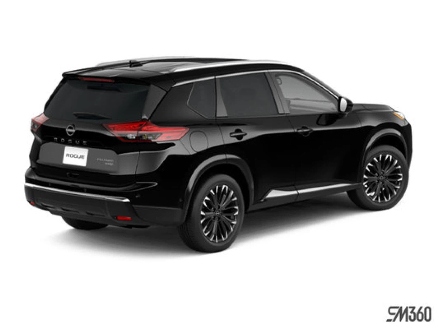 This is a black Nissan Rogue Platinum AWD SUV. It's a four-door vehicle with a sleek design and stylish alloy wheels. Comes with automatic transmission and ample cargo space.