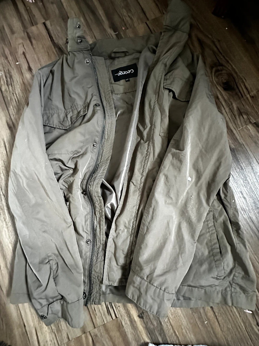 This George brand jacket is a versatile olive green colour. It's a men's size medium with a zip-up front and multiple pockets. A great casual jacket for everyday wear!CASH ONLY