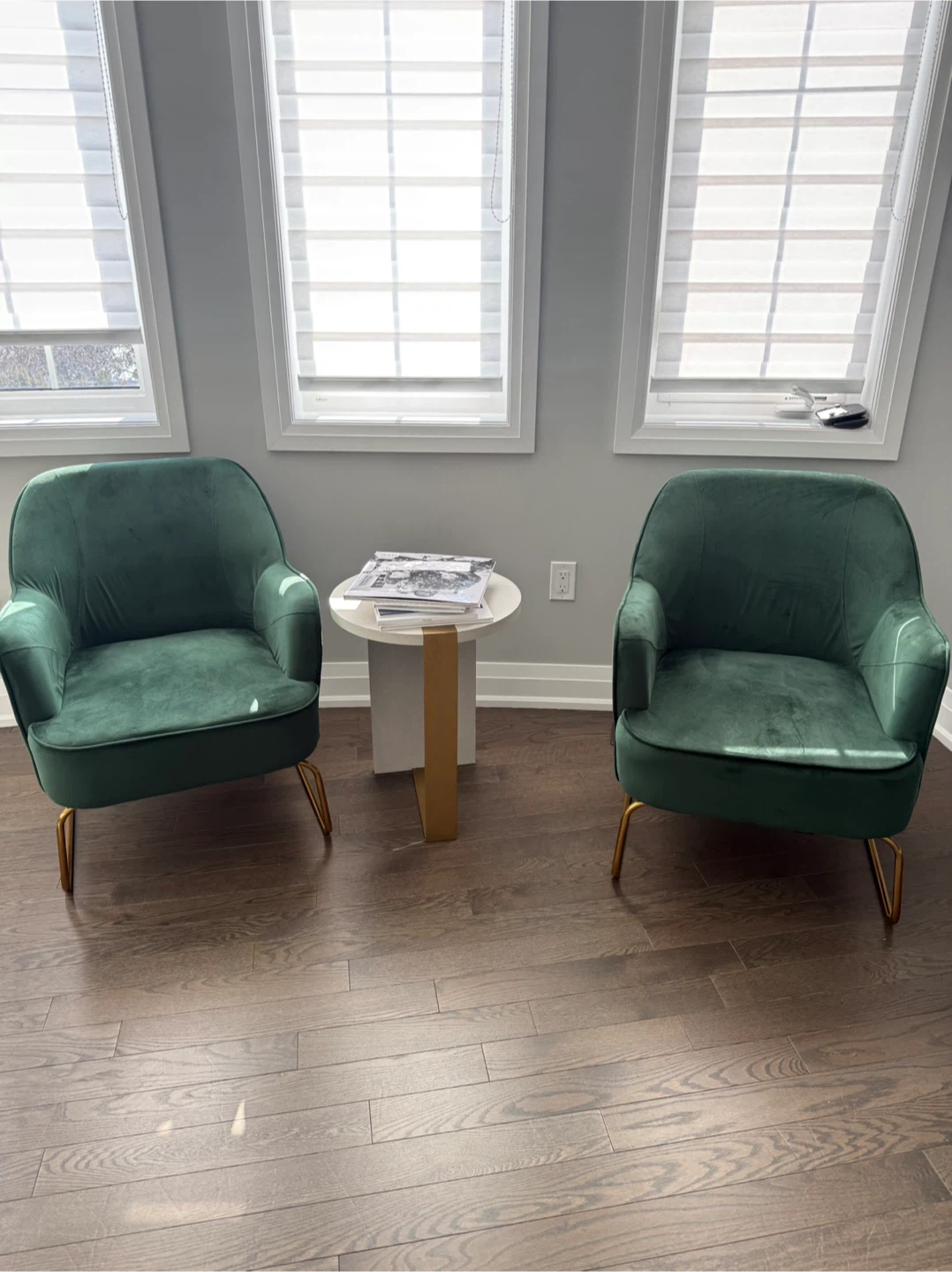 Green Velvet Accent Chairs with Gold Legs (Set of 2)