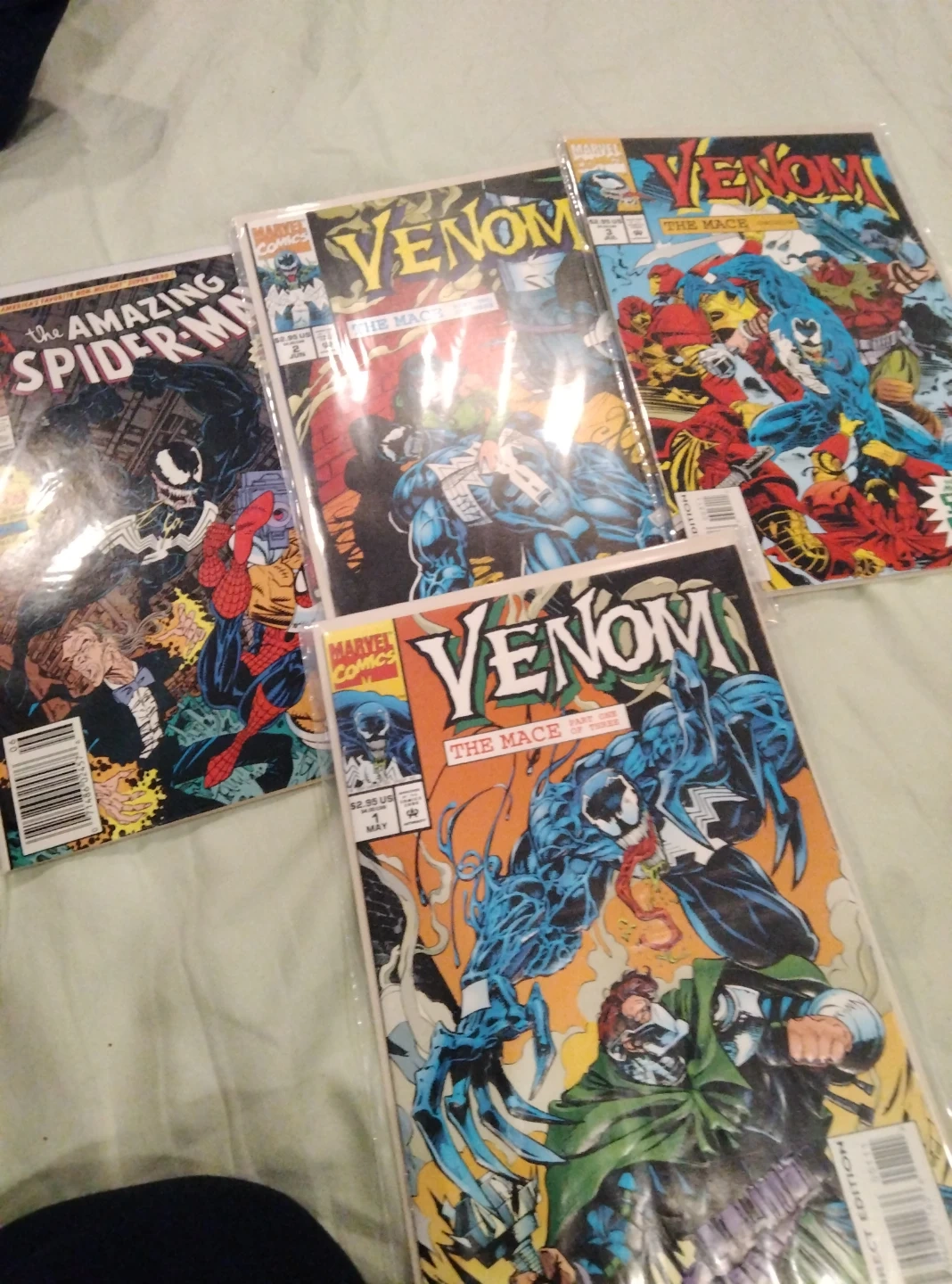 A collection of various DC Comics including Justice League Europe and Batman titles, alongside Marvel Comics' The Amazing Spider-Man. These comics are in protective sleeves. They're great for any collector or fan of classic superhero stories. Also have venom and some ones that are chrome. 45 Comics.