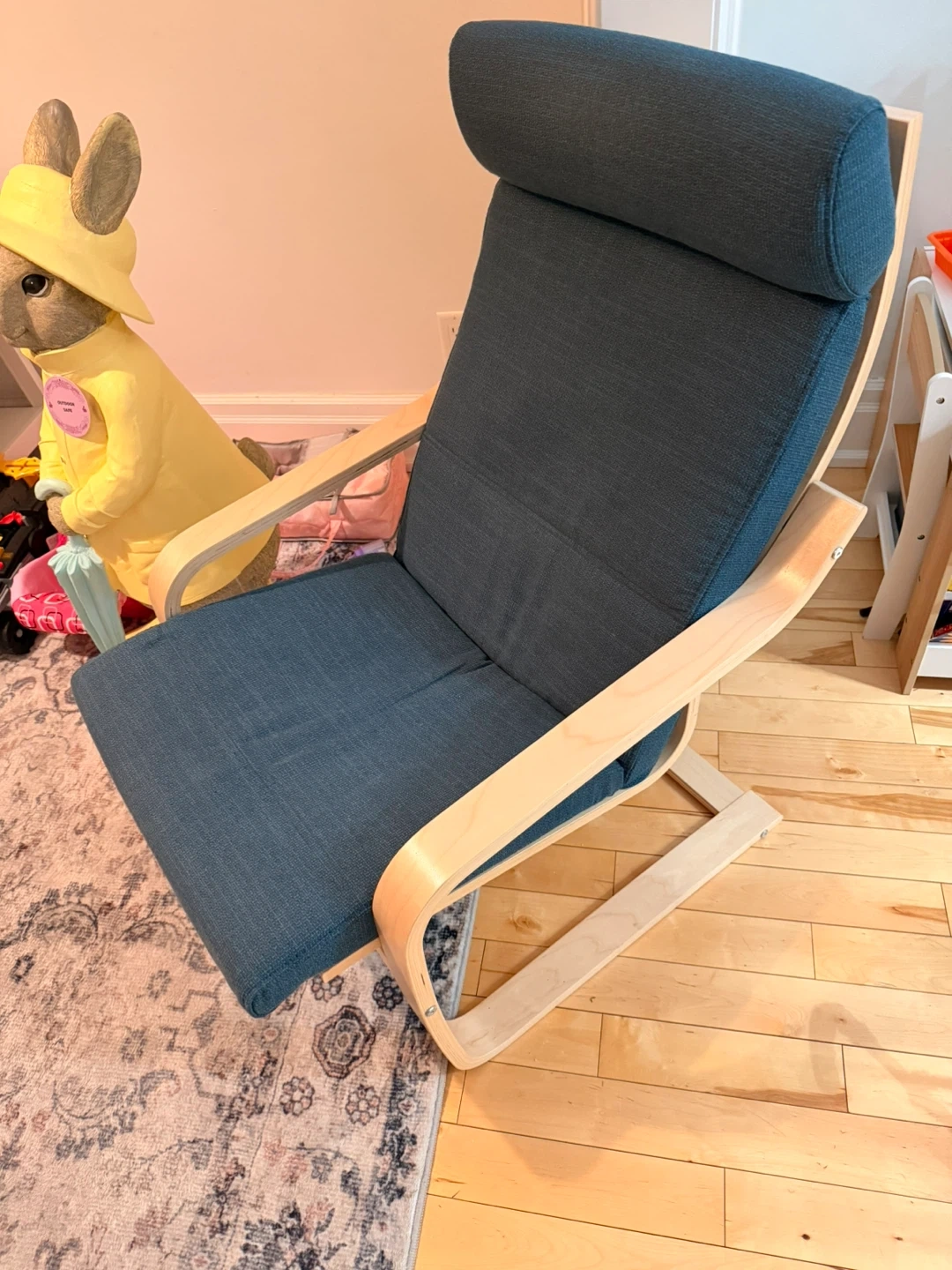 IKEA Poäng Chair - Dark Blue Fabric & Wood Frame