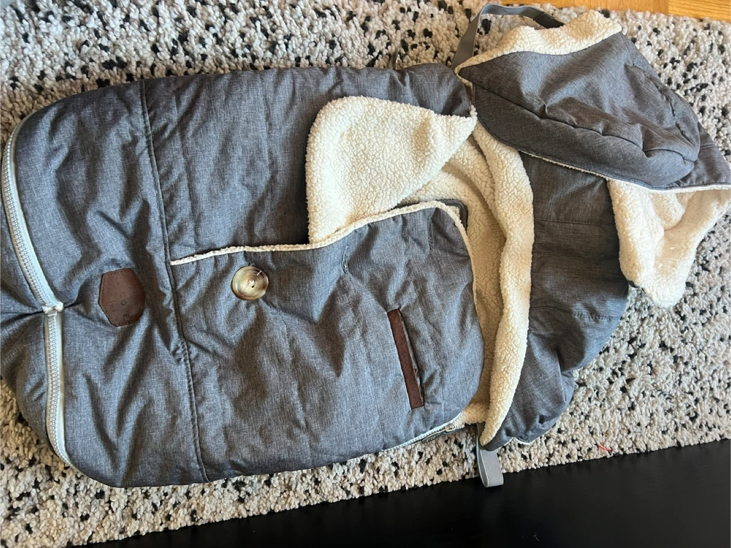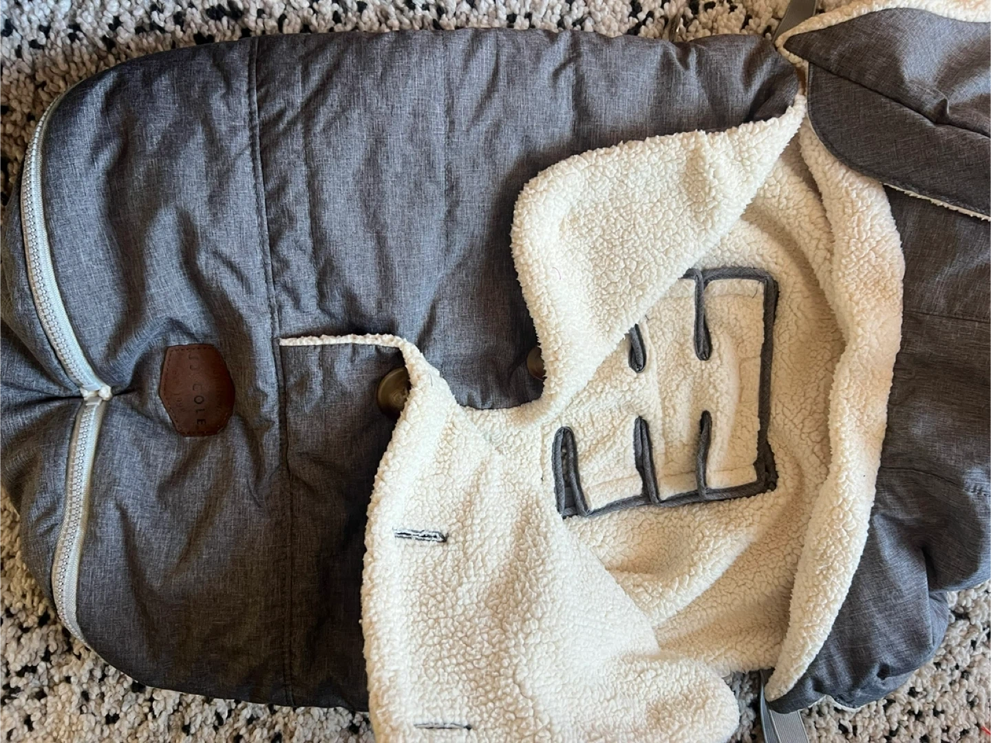 This JJ Cole Bundleme is designed to keep your little one warm and cozy. It's made with a soft Sherpa lining for extra comfort. This is great for stroller walks on chilly days!