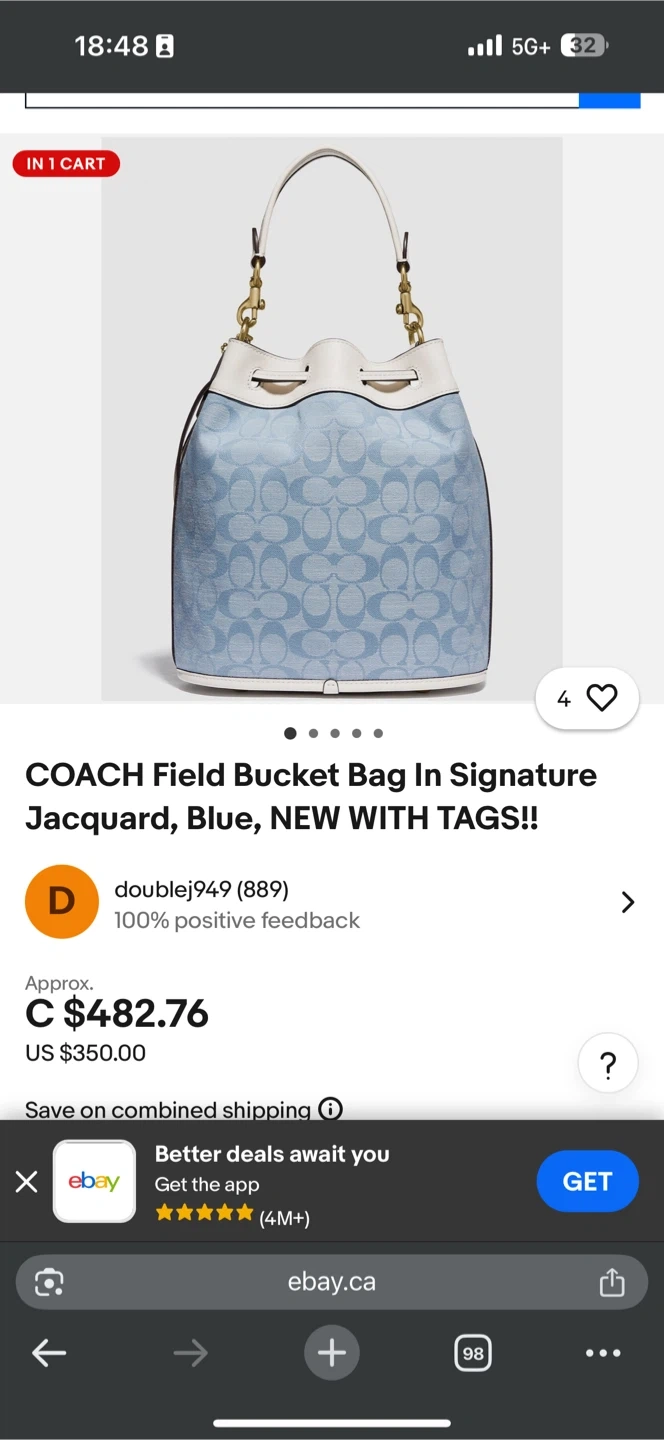 Selling a COACH Field Bucket Bag in the signature jacquard pattern. It's a lovely blue colour and in great condition! Perfect for everyday use
