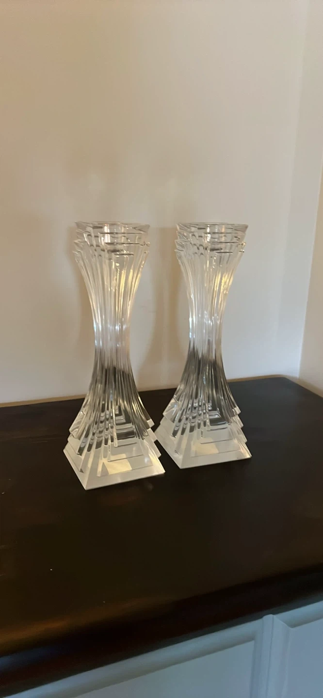 Selling a pair of Mikasa crystal candlestick holders from the City Lights collection. They are 10" tall and made in the Czech Republic. These elegant lead crystal pieces will add a touch of sophistication to any room