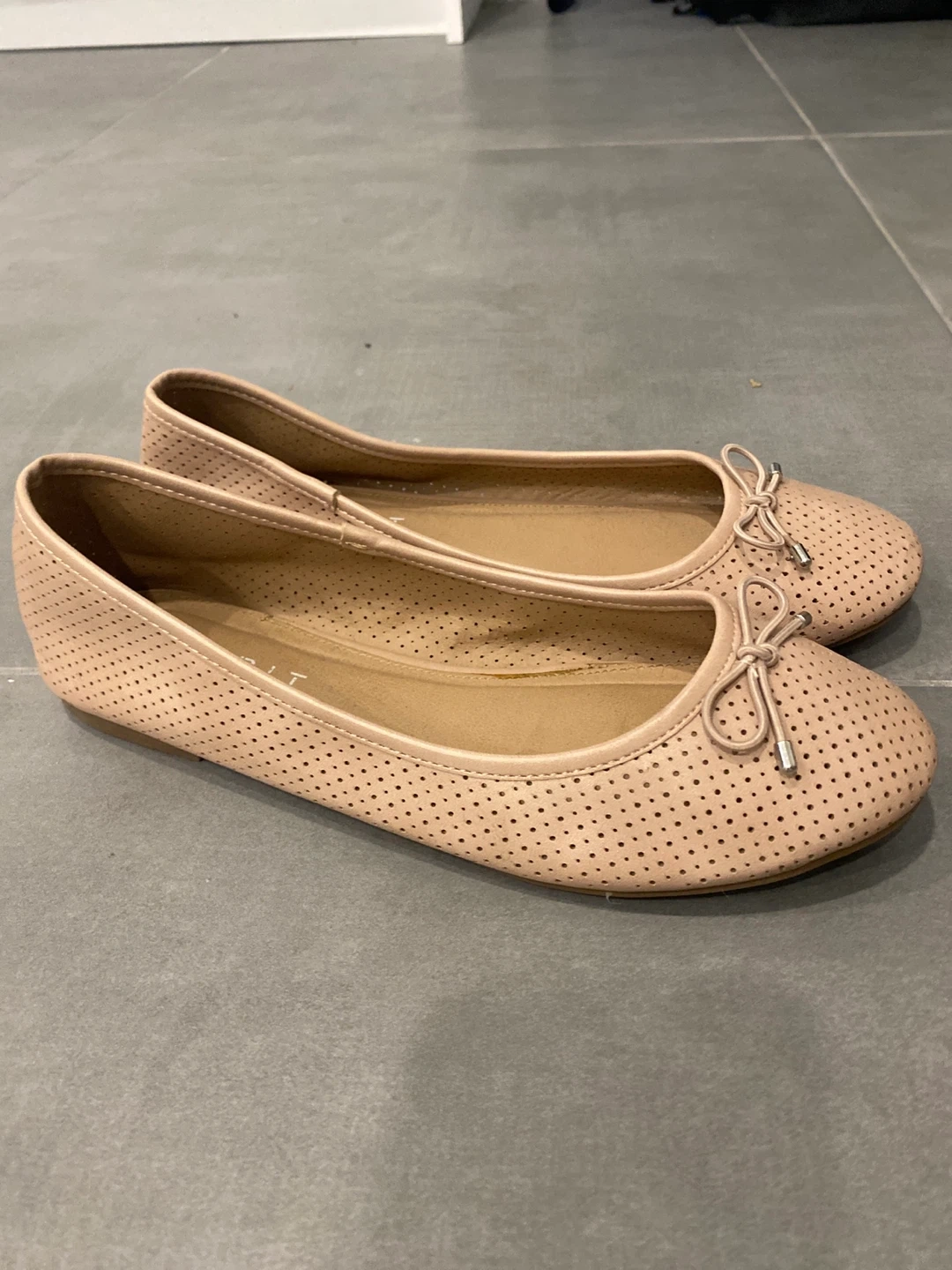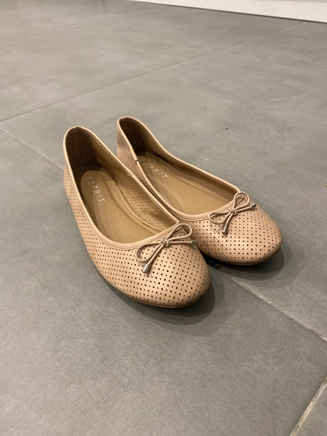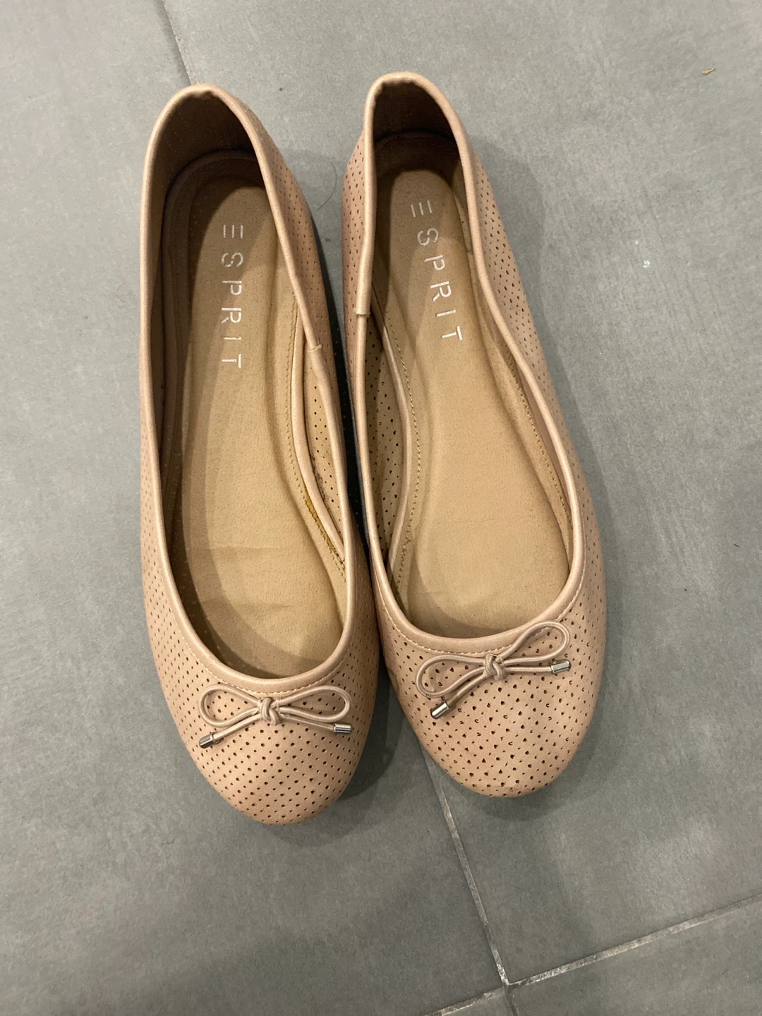 These are a pair of gently used Esprit ballet flats in a lovely neutral colour. They feature a cute bow detail and are perfect for everyday wear. They have only been used once. Size 8
