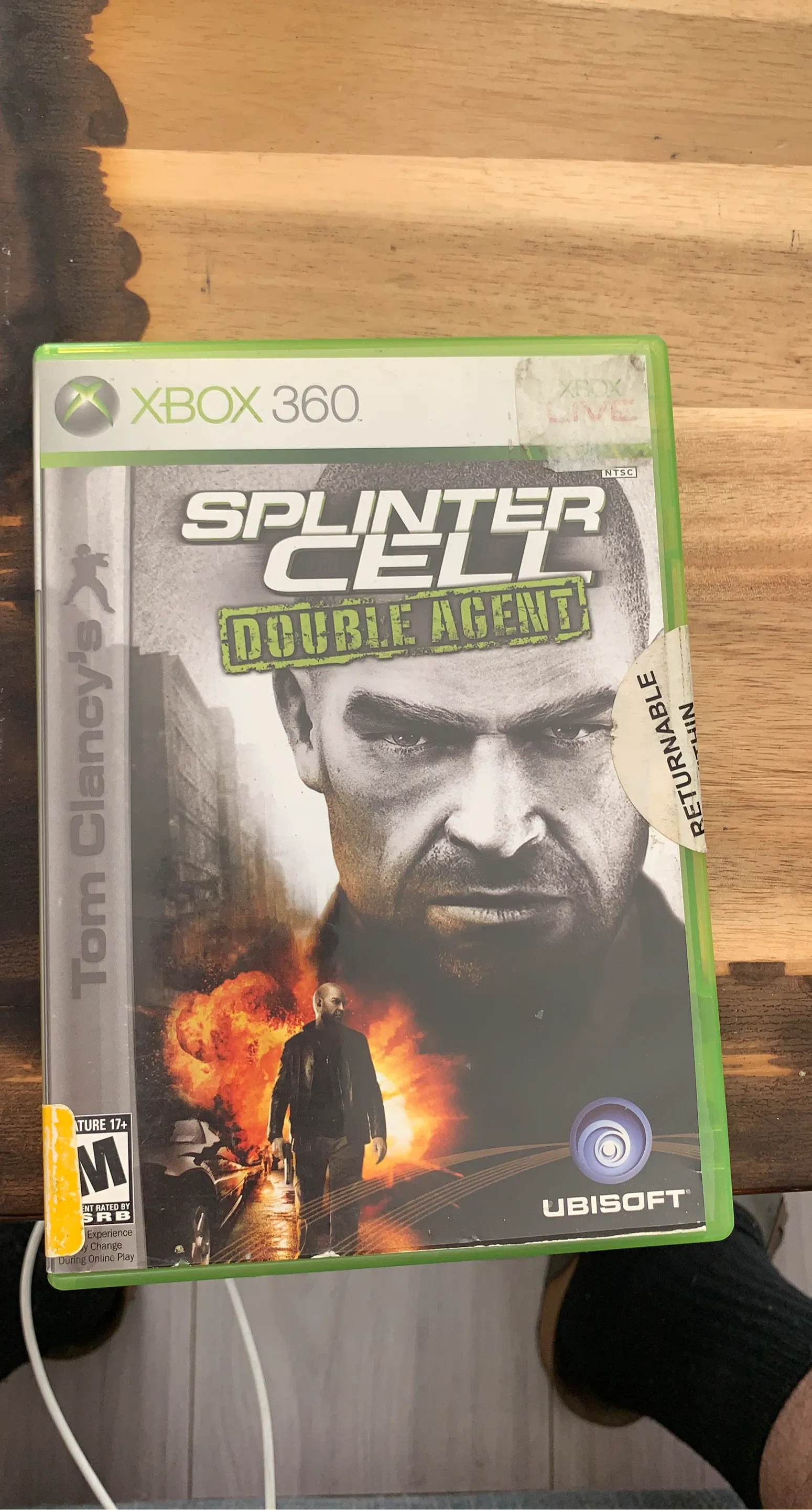 This is the Xbox 360 version of Tom Clancy's Splinter Cell Double Agent. It's rated M for Mature 17+ by the ESRB. Includes original case and game disc.