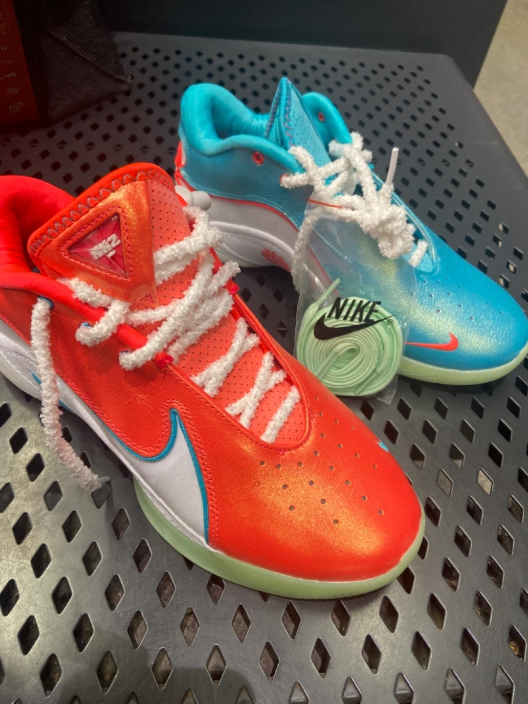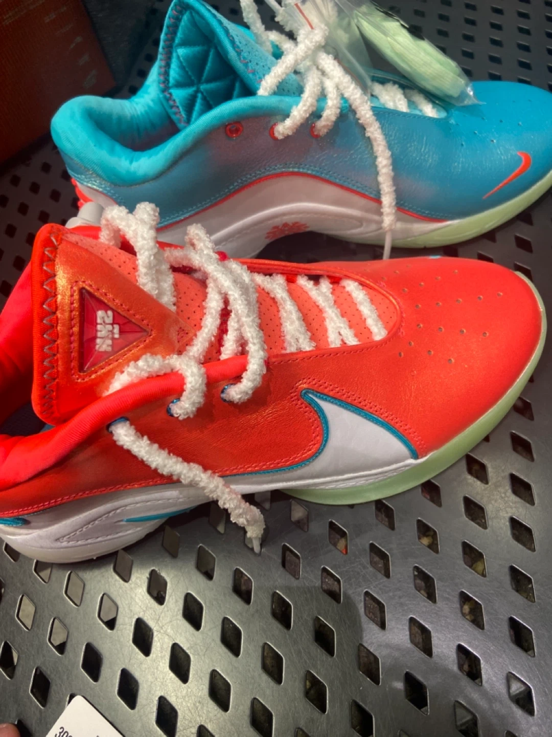These Nike LeBron XXII Xmas shoes come in a vibrant Solar Red/Dusty Cactus-White colourway. They include extra mint green Nike laces. A UK size 8 (US men's 9) shoe. This pair is perfect for basketball players or collectors!
