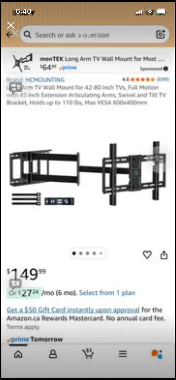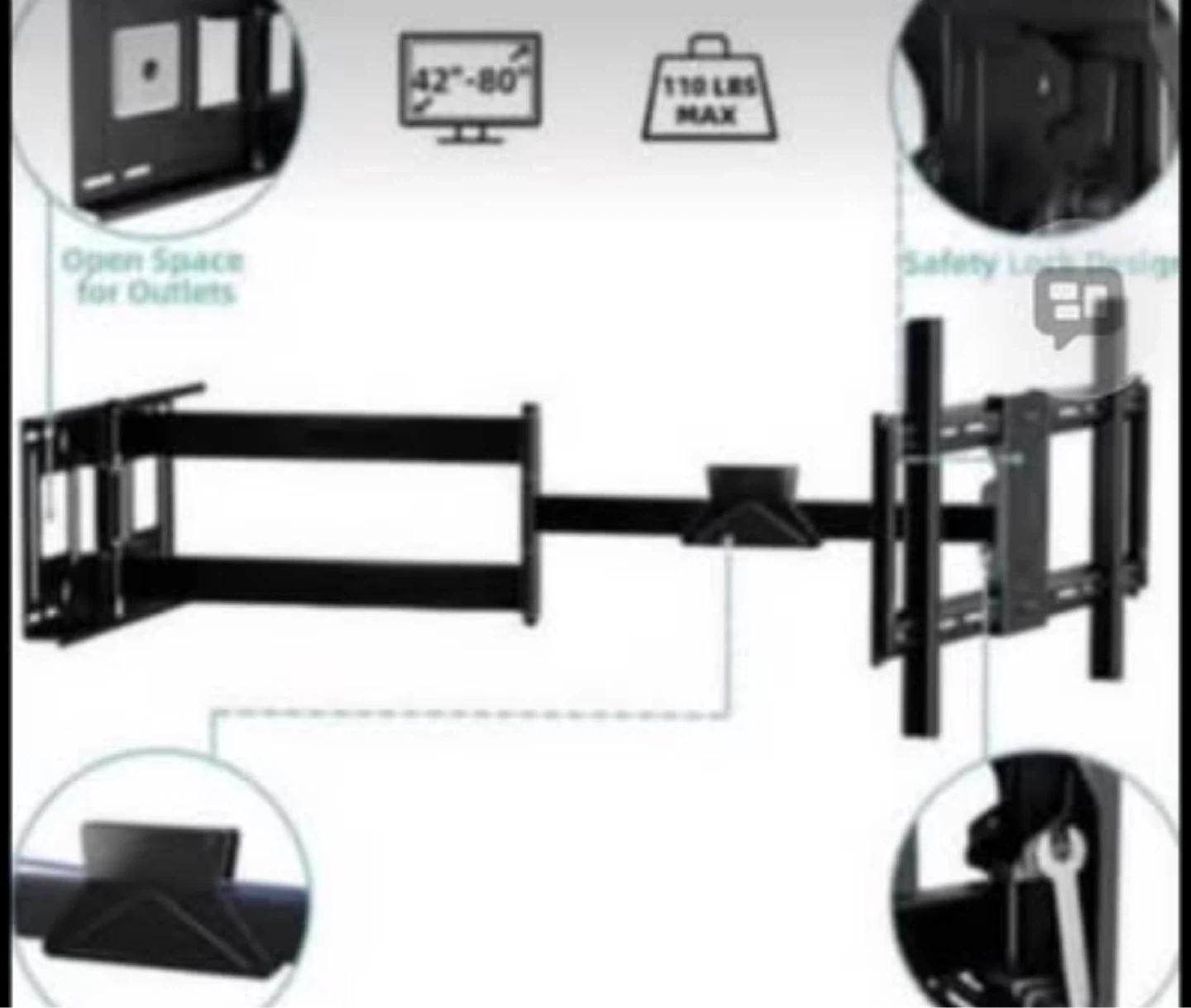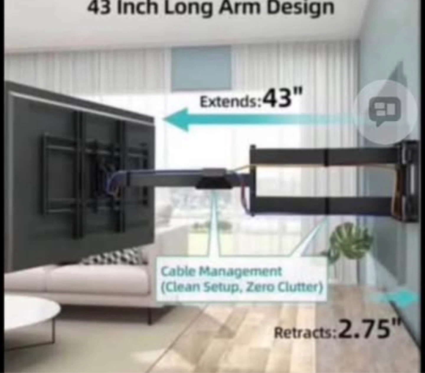 Long Arm TV Wall Mount for 42-80 inch TVs, Full Motion with 43 inch Extension Articulating Arms, Swivel and Tilt TV Bracket, Holds up to 110 lbs, Max VESA 600x400mm