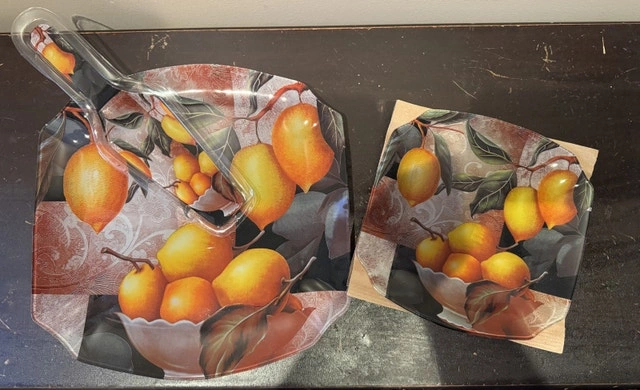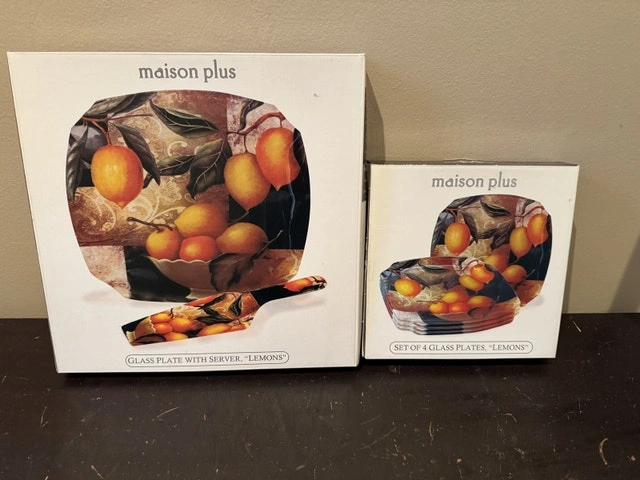 Buy & SellPlates and platter serving setPlates and platter serving set$50Brand new in boxes. Set of four plates and serving platter with matching spatula. Lemon design. Made of glass.ConditionNewWHERE TO MEETCheck LocationView MapSELLERChistinaOld East York292 reviews0 chats·0 favorites·9 viewsSEND CHAT TO SELLERHi Chistina! I’m interested in your listing.Hi Chistina! I’m interested in your listing.Get the Karrot app to chatSign In to chat