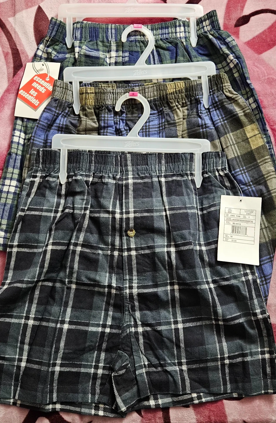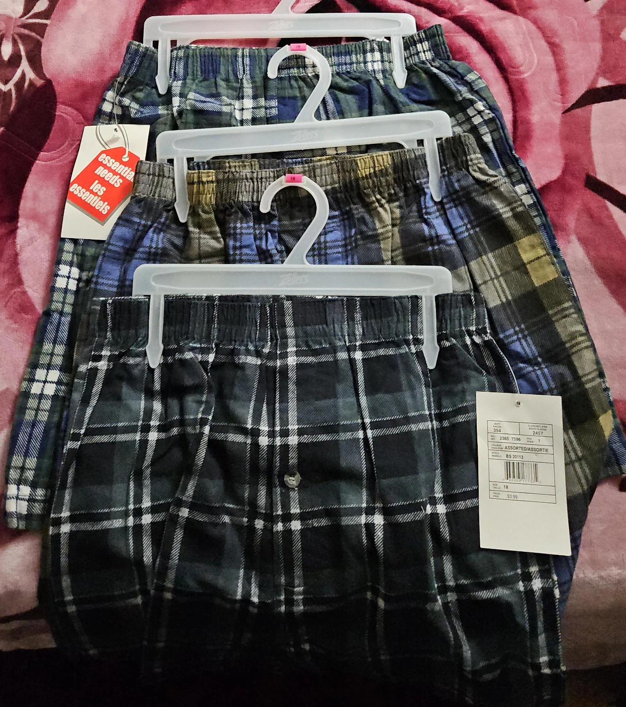 144Selling three pairs of plaid shorts from Essential Needs! They're size 18 and perfect for lounging around the house. The original price was $3.99 Suitable for teenagers or thin people $8 together