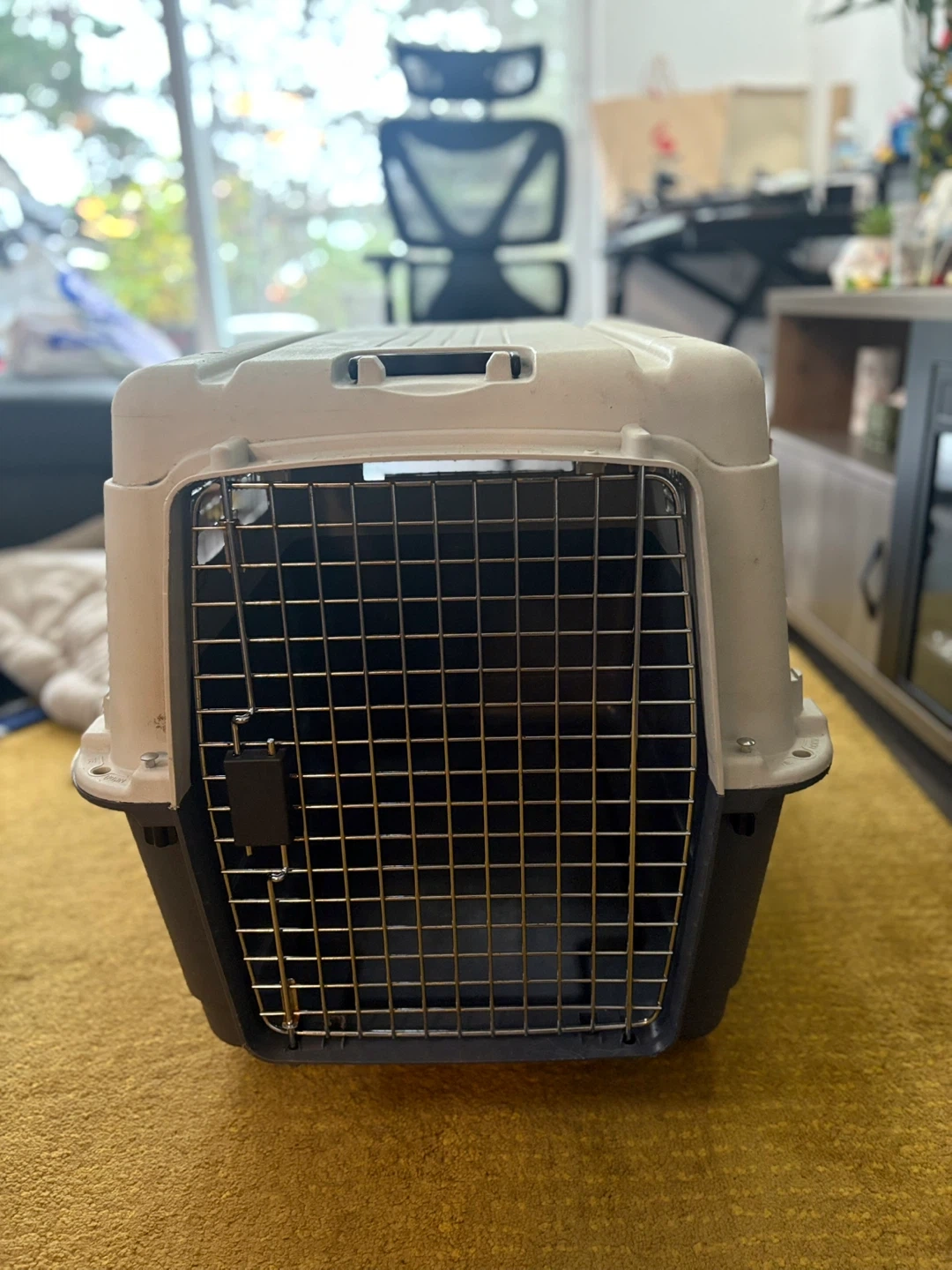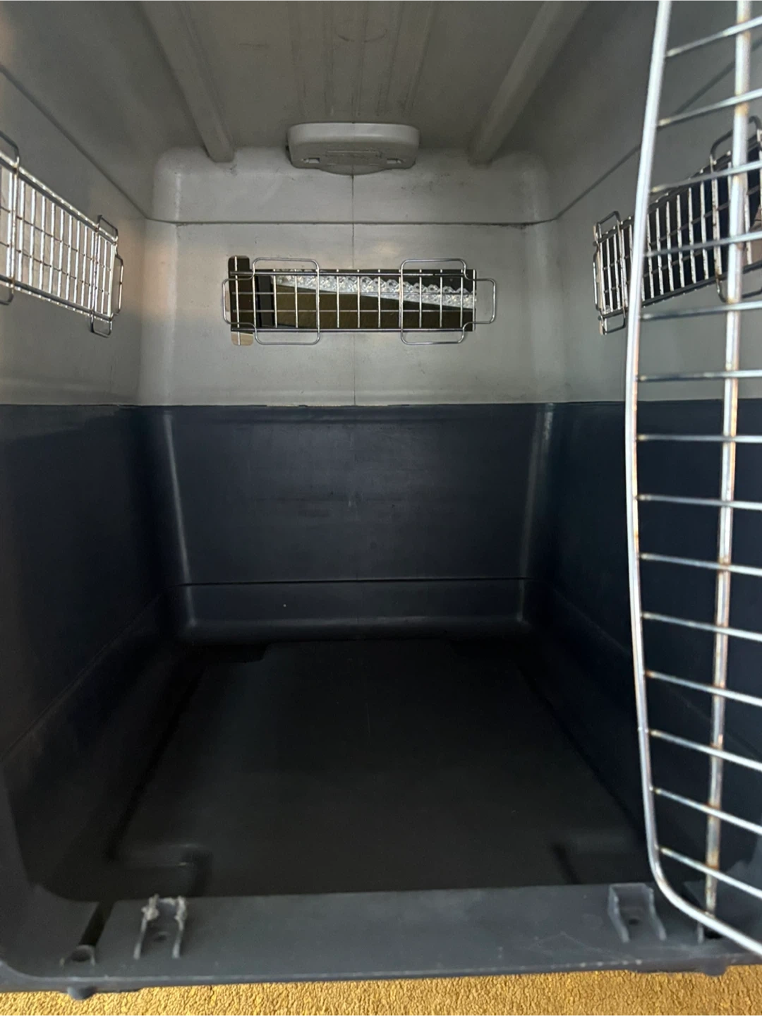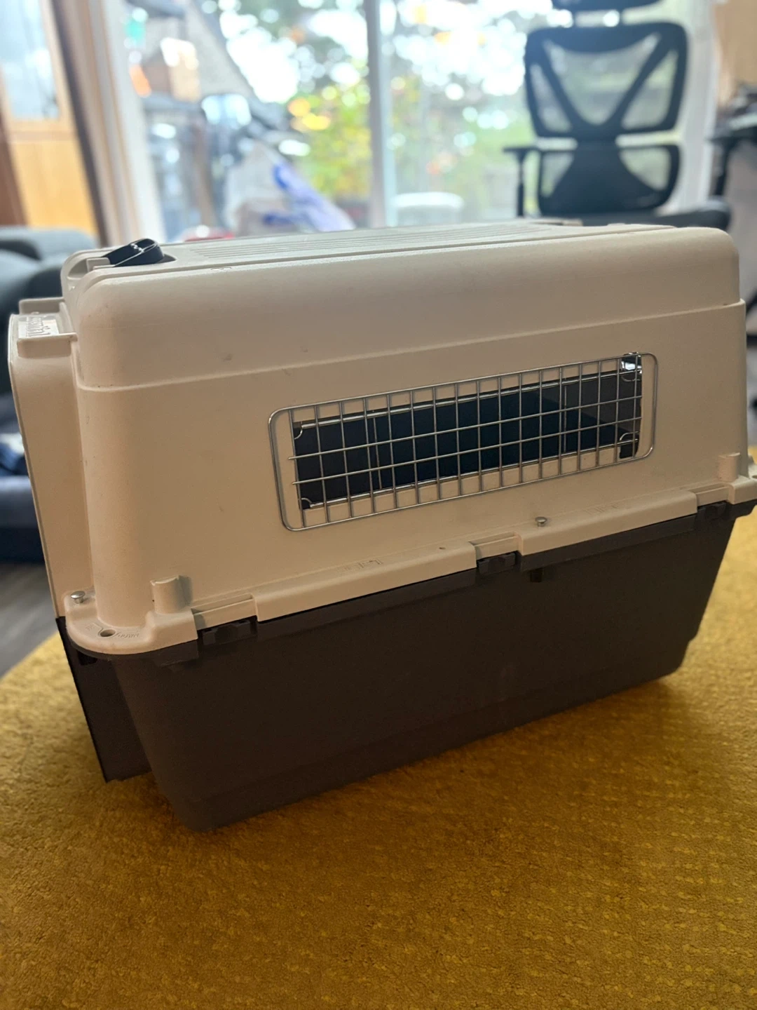 60pet carrier in great condition! It's perfect for transporting your furry friend safely and comfortably. Dimensions are 32 x 22 x 23 inches.