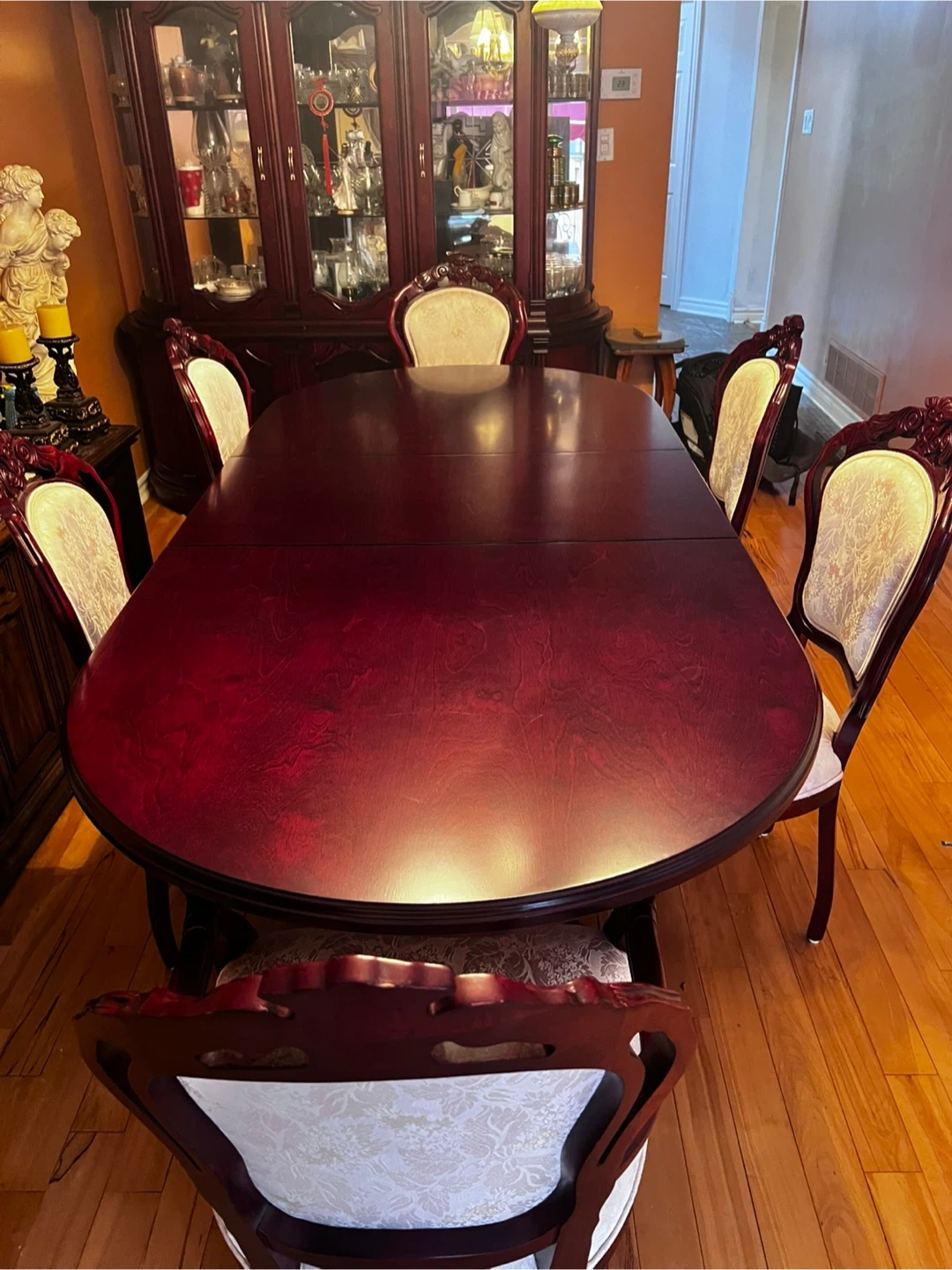 Elegant Cherry Wood Dining Set - 6 Chairs & Extendable Table