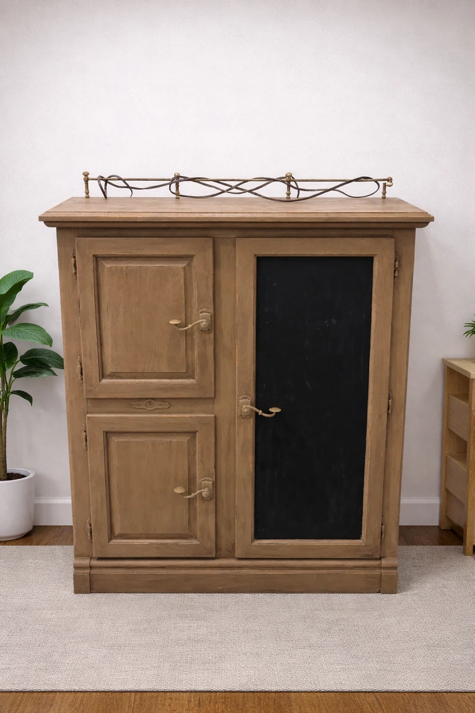 Rustic Wood Coffee Bar Cabinet with Chalkboard Door