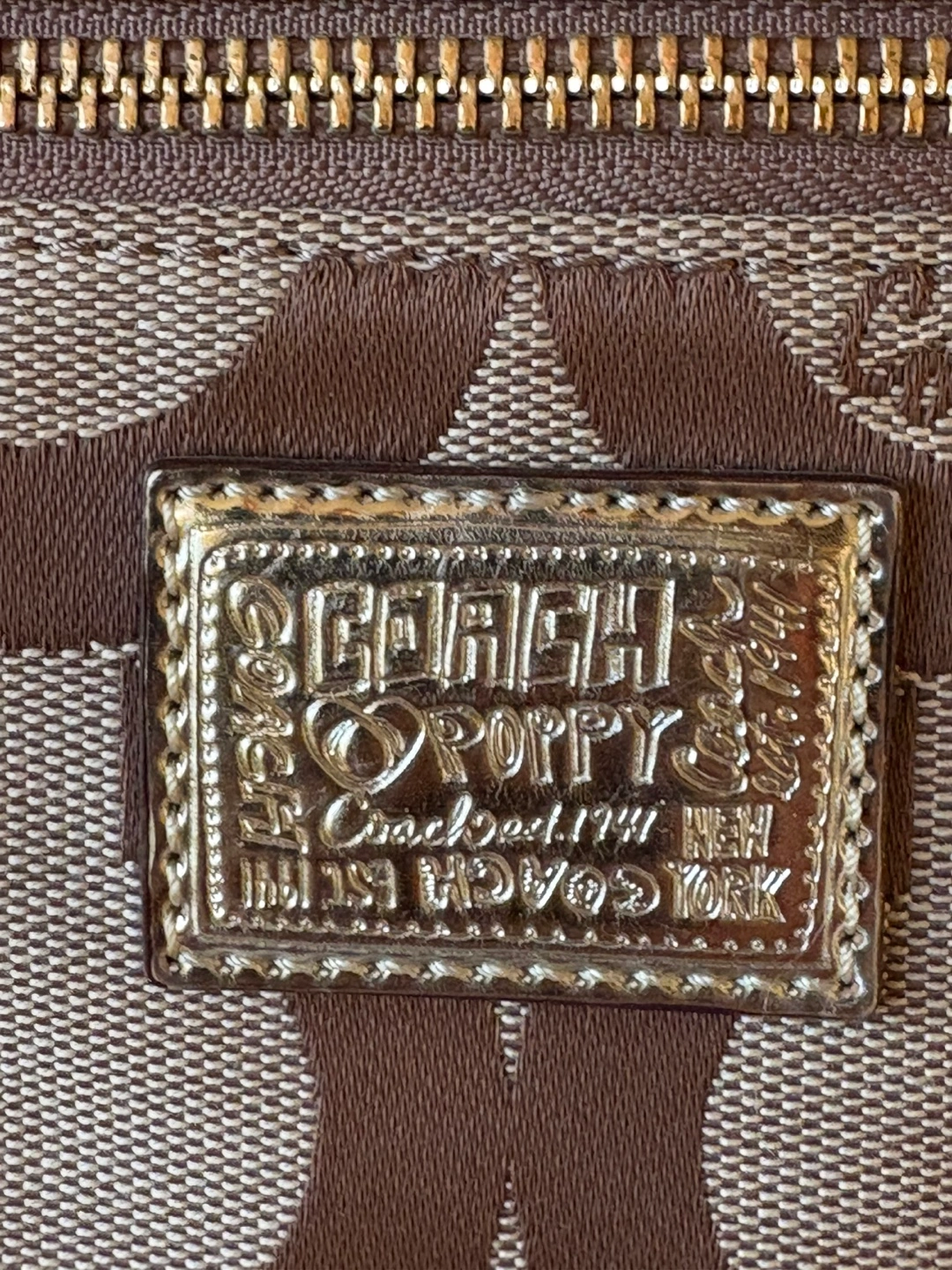 Brand New Coach tote bag. Features a brown and beige signature C pattern. Top zip closure. Two shoulder straps. Interior pockets. Small tag attached.