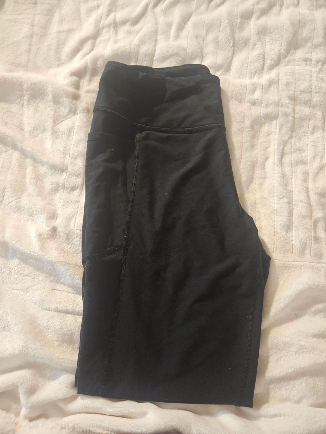Black leggings with convenient side pockets. Made from a stretchy material for comfort. These are great for everyday wear or workouts! Large Victoria Secret