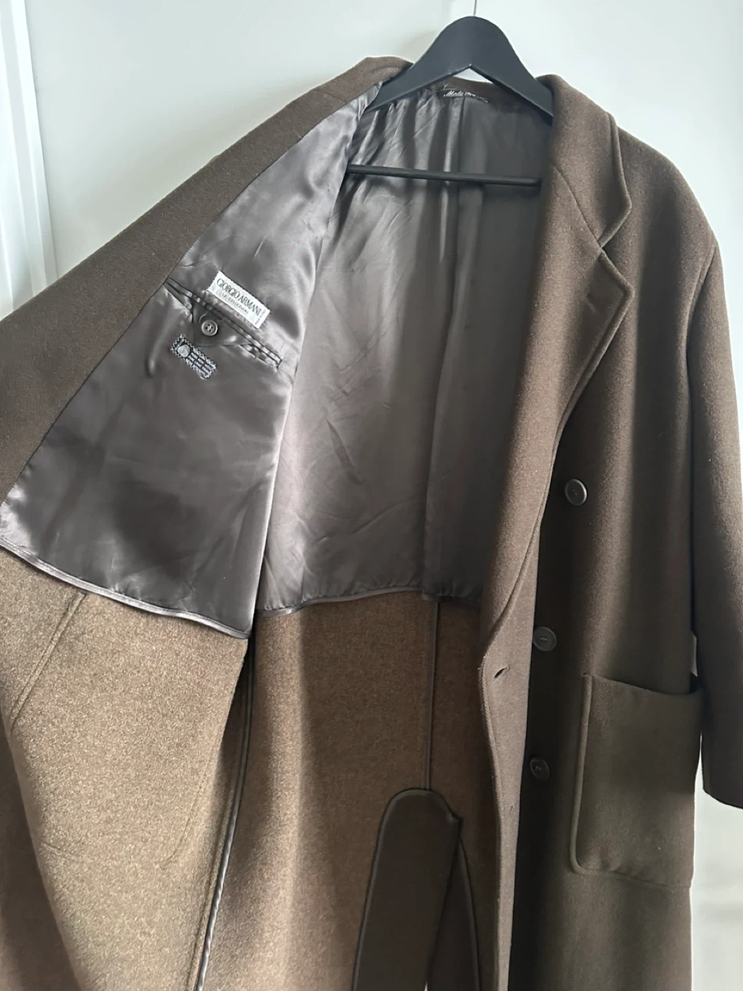 Classic Giorgio Armani Le Collezioni overcoat from Saks Fifth Avenue. Made from pure new wool. Care instructions: dry clean only. Made in Italy. Excellent condition.