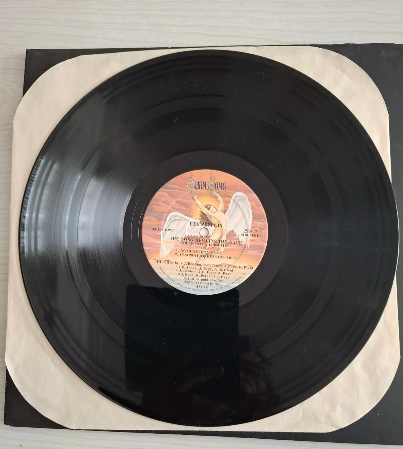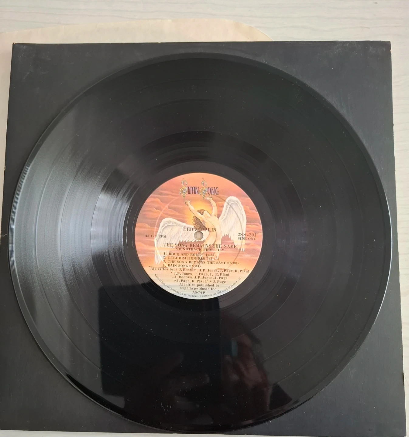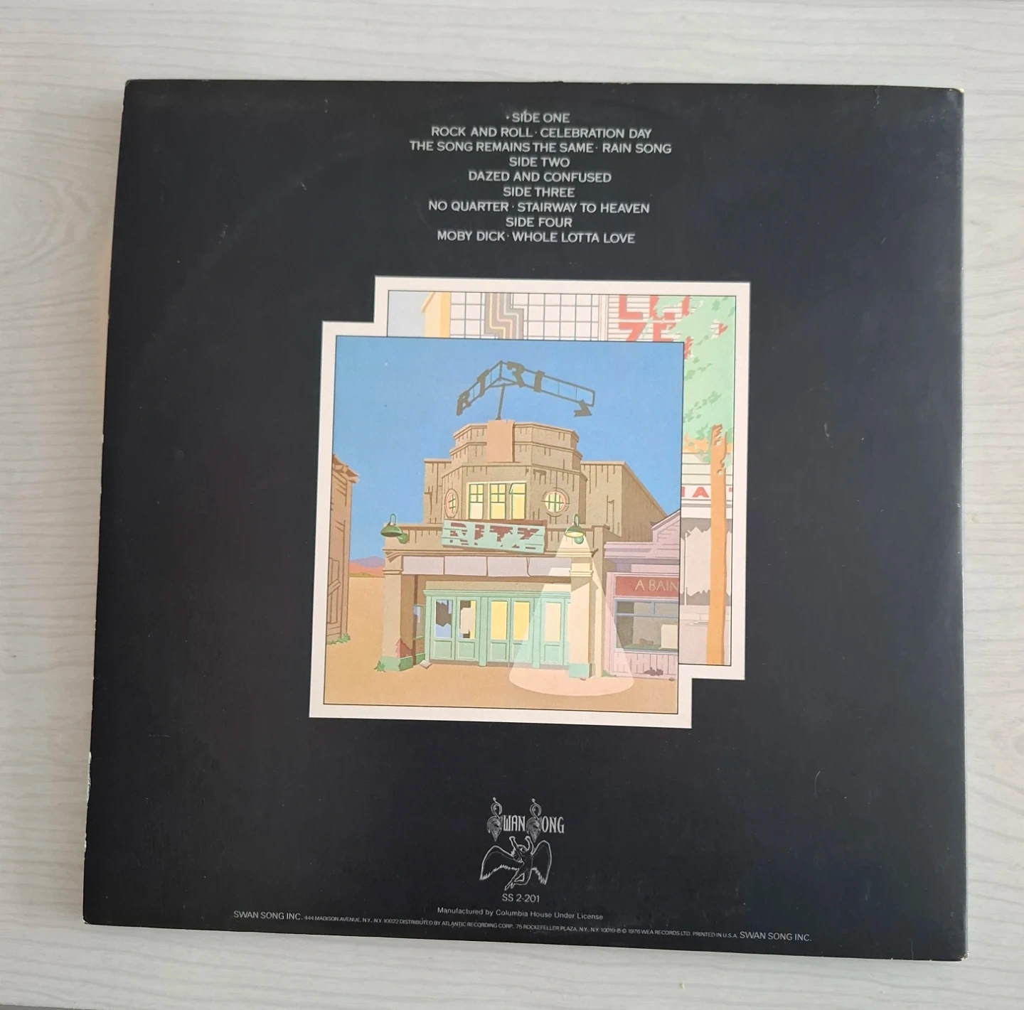 The soundtrack from the film Led Zeppelin: The Song Remains the Same. Features Side One: "Rock and Roll", "Celebration Day", "The Song Remains the Same", "The Rain Song", "Dazed and Confused". Side Two: "No Quarter", "Stairway to Heaven", "Moby Dick", "Whole Lotta Love". Includes original gatefold packaging and liner notes.