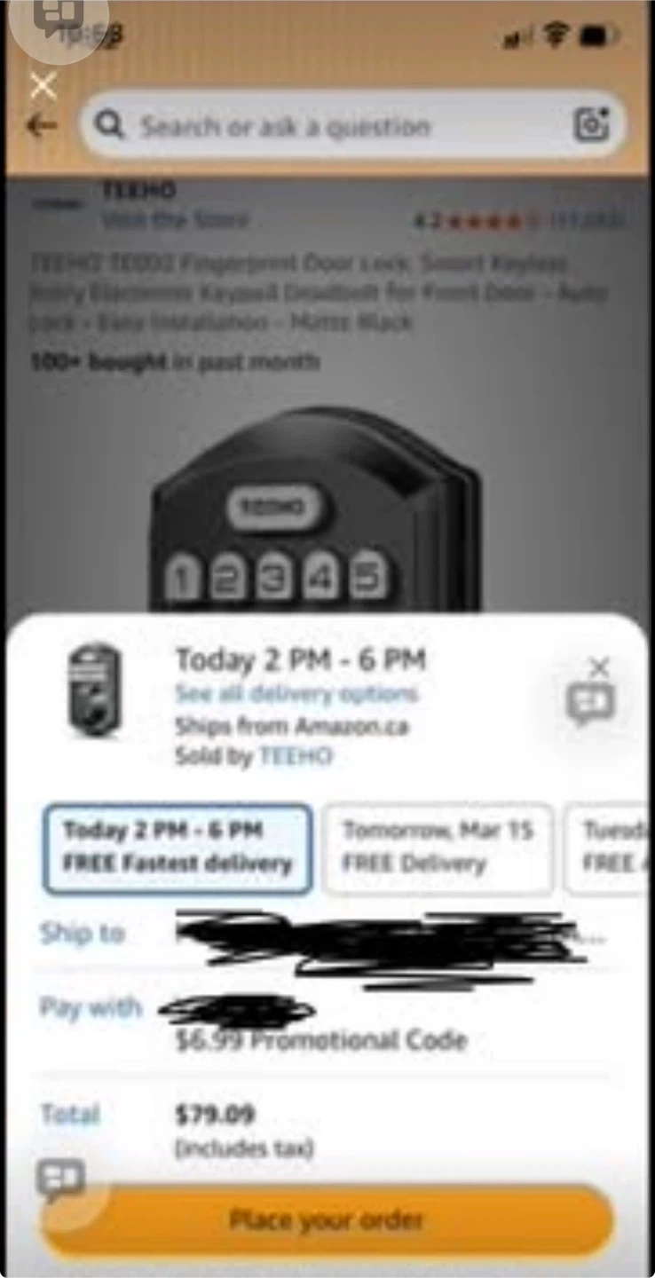 TECHO Smart Door Lock with Keypad and Fingerprint Scanner