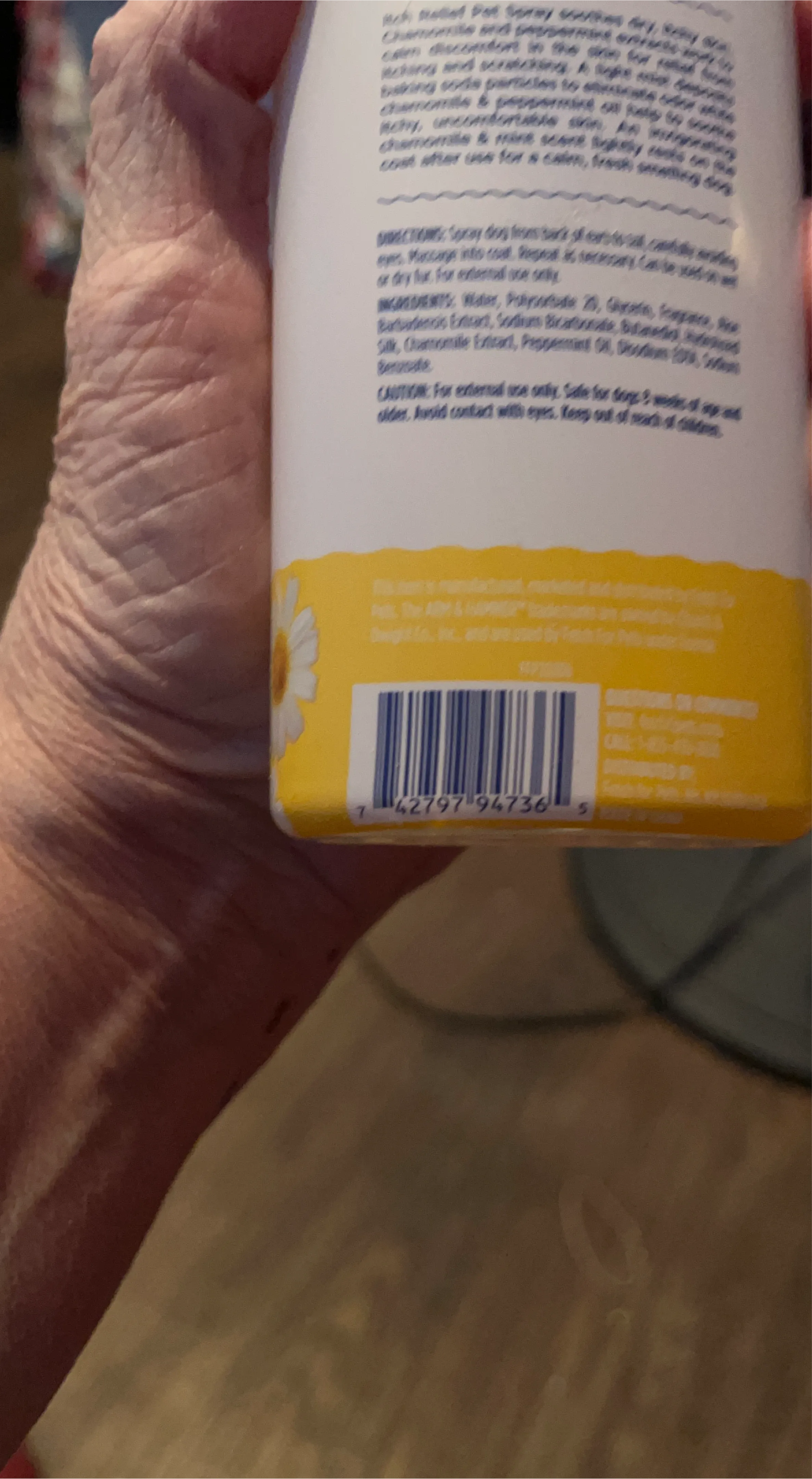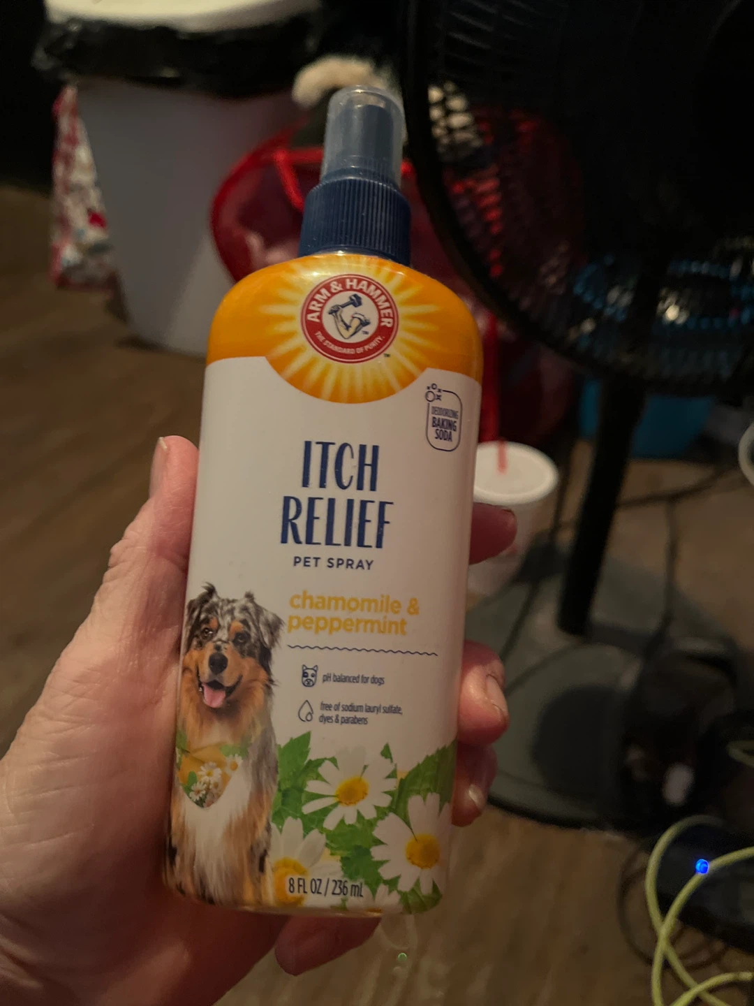 I'm selling an Arm & Hammer Itch Relief Pet Spray! It soothes dry, itchy skin and reduces discomfort in the affected area. This spray has chamomile and peppermint oil that helps calm itchy, irritated skin. It is pH balanced for dogs, and free of sodium lauryl sulfate, dyes, and parabens