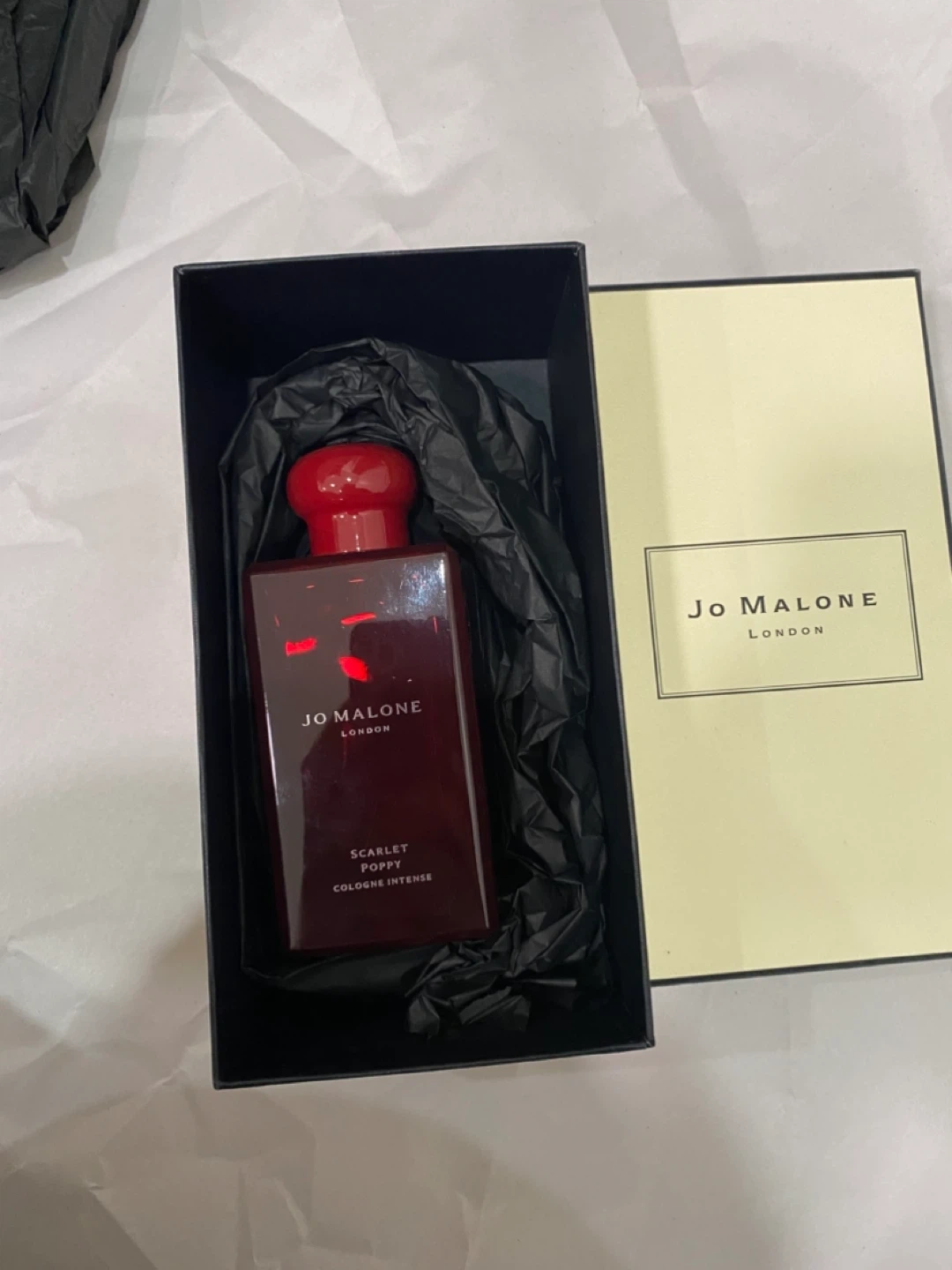 Selling a bottle of Jo Malone's Scarlet Poppy Cologne Intense. It's a 3.4 oz / 100 ml cologne spray. The bottle comes with its original box.