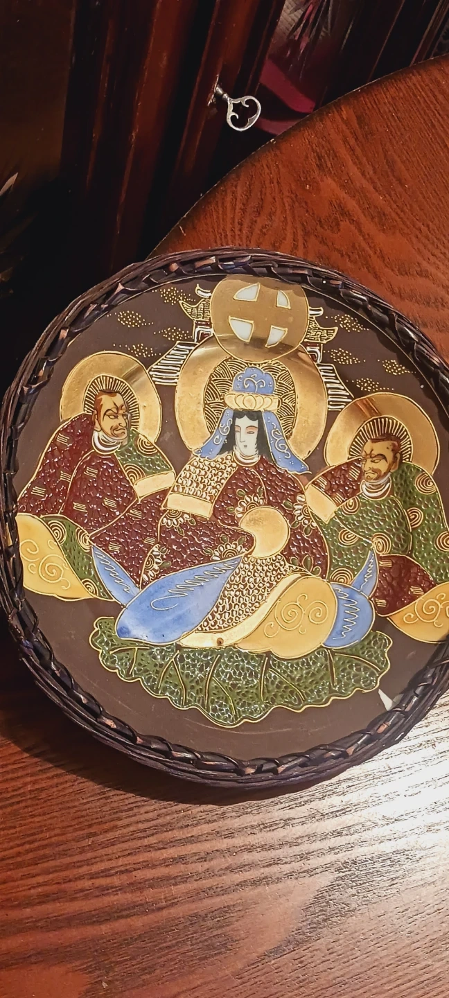 Gorgeous Vintage Japanese Satsuma Handpainted Decorative Plate Depicting Wedding. It's a unique piece for display! The plate has a woven border. 10" diameter. Made in Japan. ALL MY PRICES ARE NEGOTIABLE !!