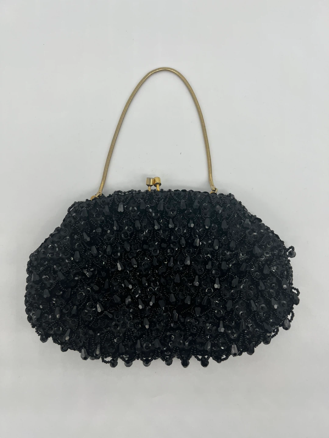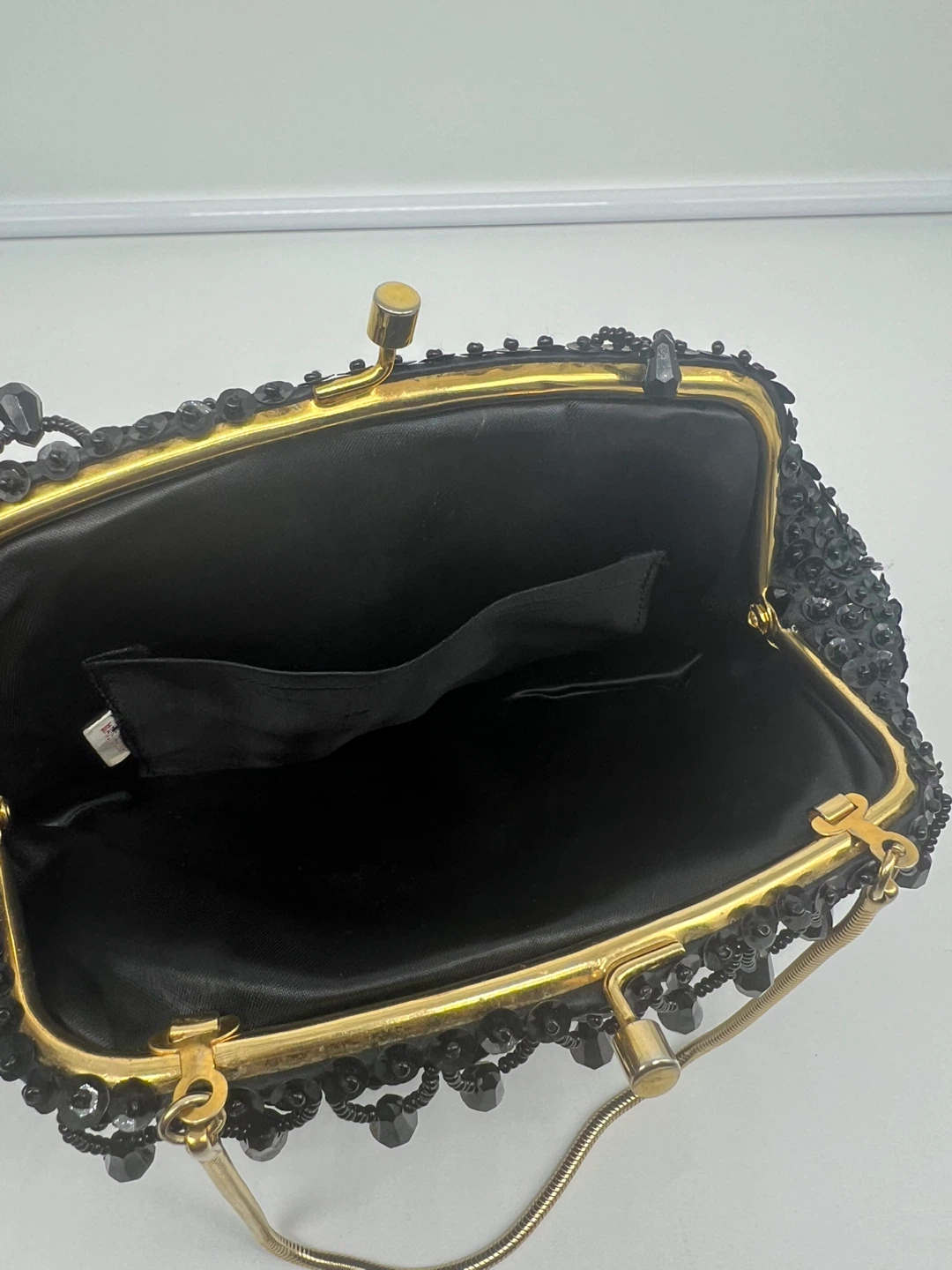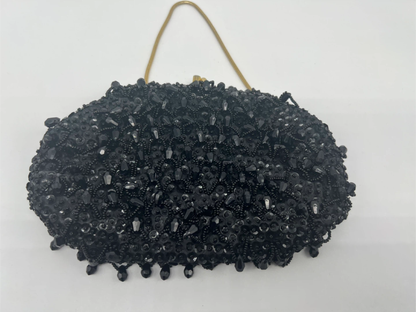 MADE IN HONG KONG Vintage Black Hand Beaded Clutch