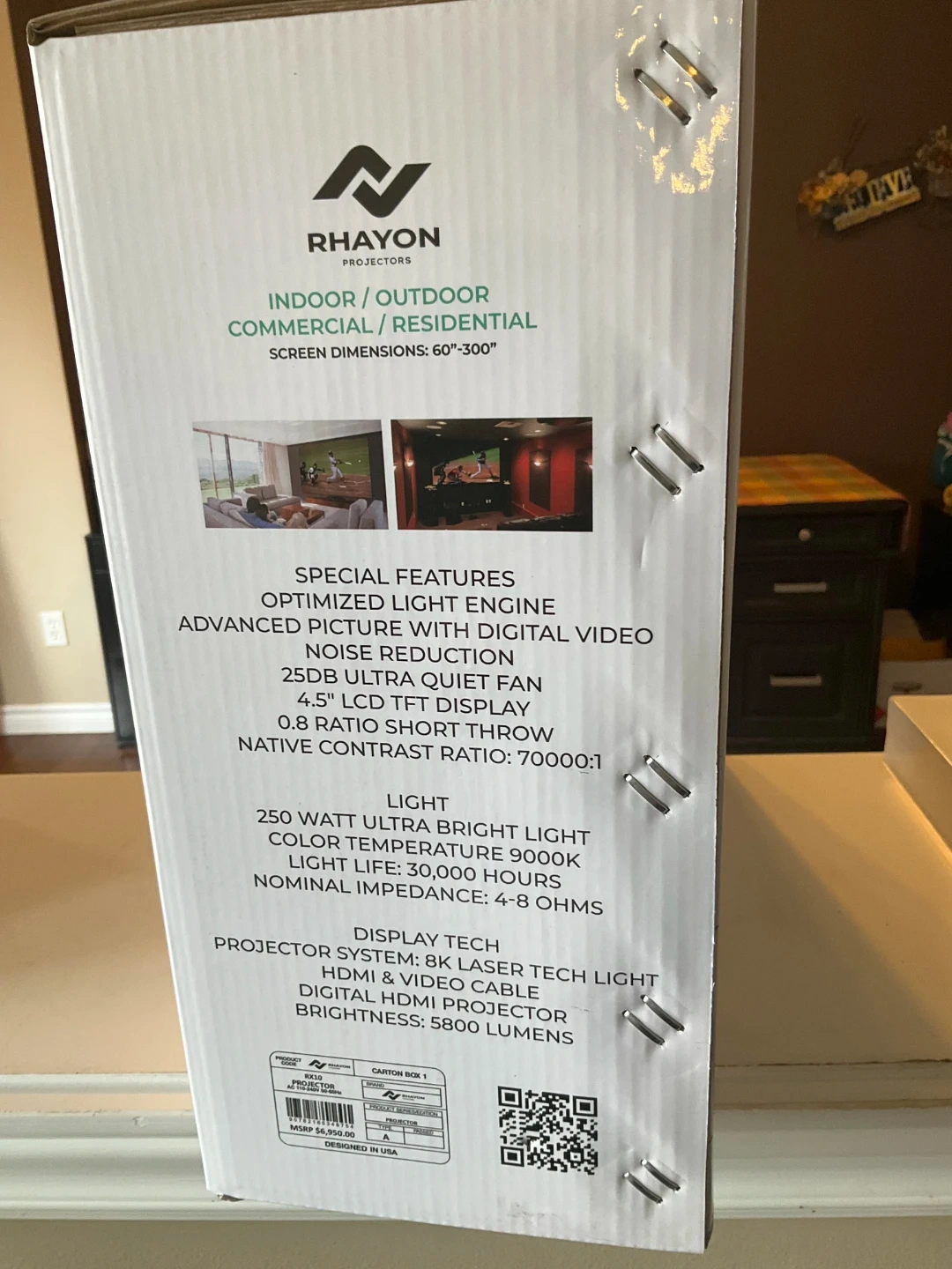 Includes a 3 year subscription to Netflix and IPTV 1200 channels loaded. Selling a wedding gift I got from my rich uncle. My wife and I just got back from our honeymoon and we went over budget and we are short $350 on rent. This sells in stores for over $5000. Call Tony at 416 569 6154. Comes with a projector and Remote control Digital Projector Screen. Connects to cable/video games/laptop/ Netflix and all apps. Displays 40"-300" on any colored wall. Smart/Wifi included. In the box is a ceiling mount and a gold platted HDMi cable. You also get wireless speakers and a 3 year warranty. This will work with in any size room and fits in a car for pick up. 20 mins install video included and can be placed on a coffee table for easy set up. This all new in the box and can be tested upon pick up.