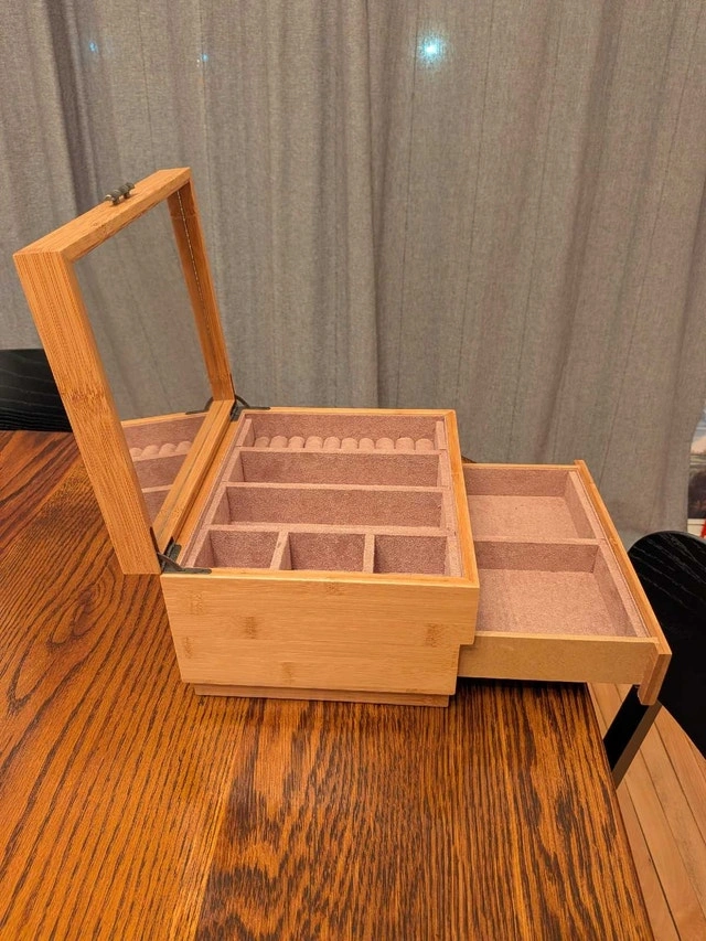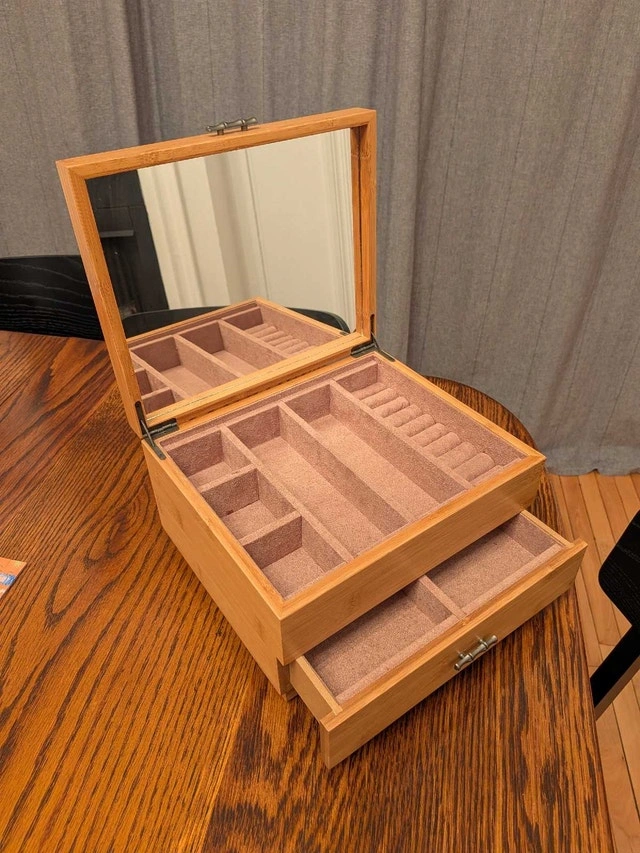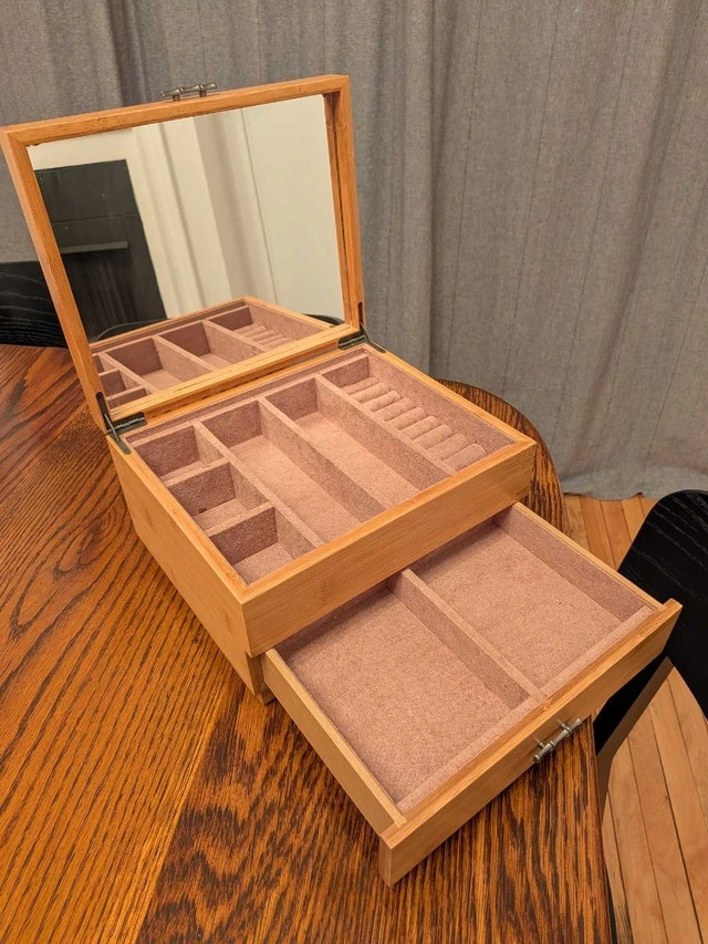 Buy & SellWooden Jewelry Box with Drawer and MirrorWooden Jewelry Box with Drawer and Mirror$30Lightly used wooden jewelry box with drawer and mirror. Cash accepted.WHERE TO MEETCheck LocationView MapSELLERverifiedAlexisDowntown731 review0 chats·0 favorites·4 viewsSEND CHAT TO SELLERHi Alexis! I’m interested in your listing.Hi Alexis! I’m interested in your listing.Get the Karrot app to chatSign In to chat