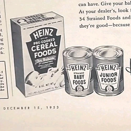 Lot of 2 Vintage Heinz Baby Food Ads 1950 & 1953