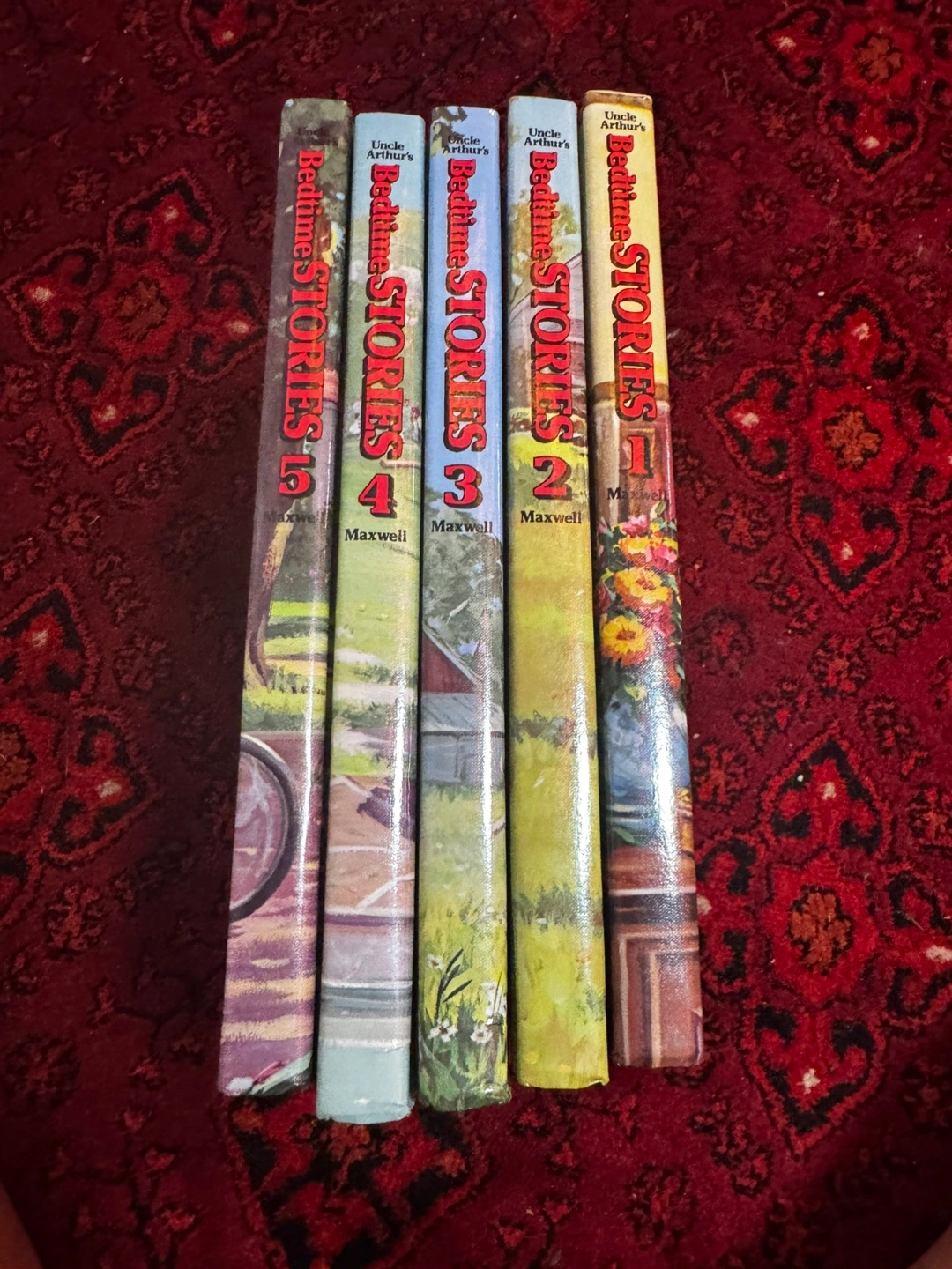 A collection of Uncle Arthur's Bedtime Stories, featuring colourful illustrations. These books are perfect for unwinding and relaxing before bed. The books have a vintage look and design.
