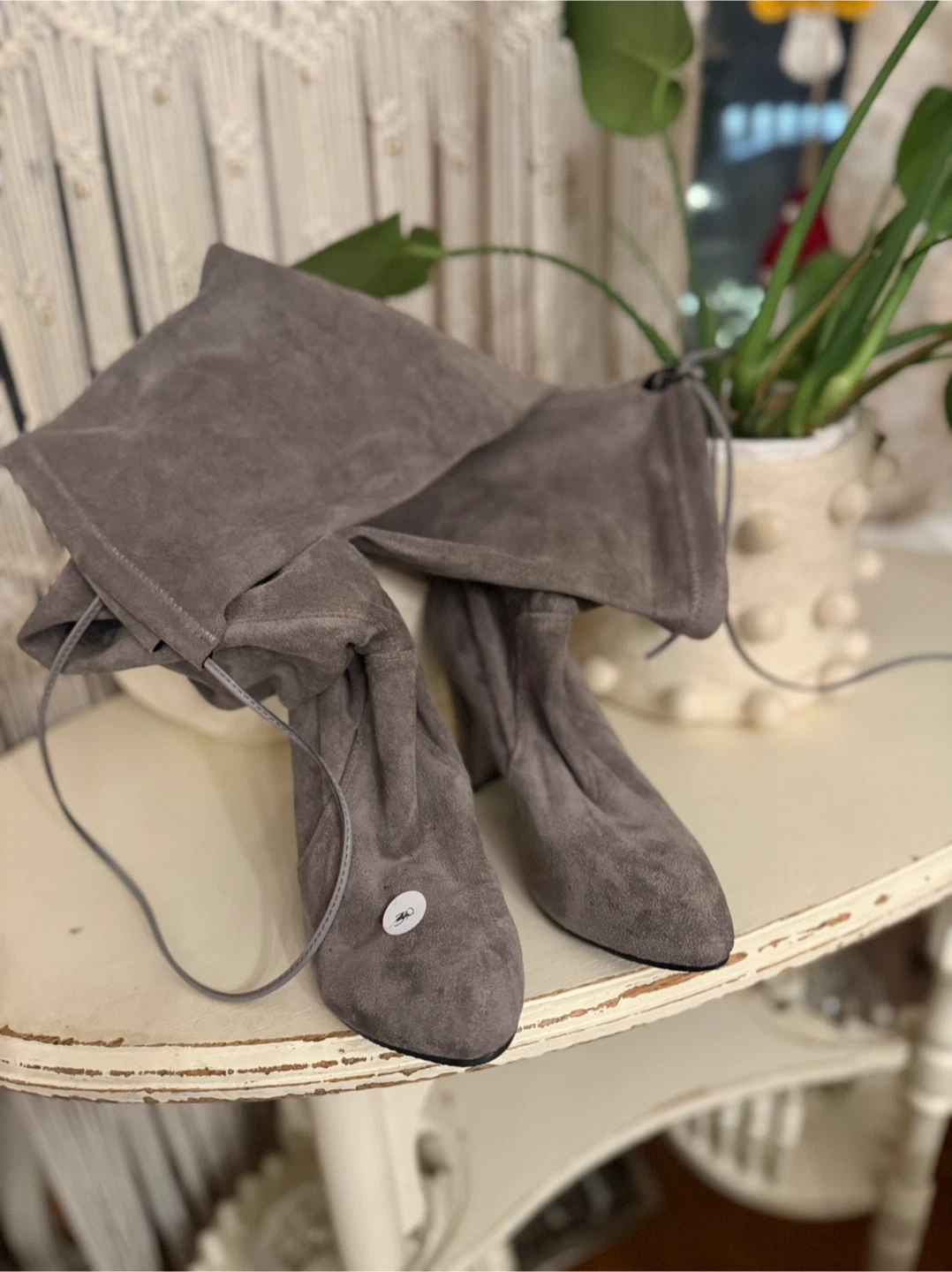 Selling a pair of Stuart Weitzman grey suede boots! They are in great condition and are a European size 37. Perfect for adding a touch of style to any outfit!