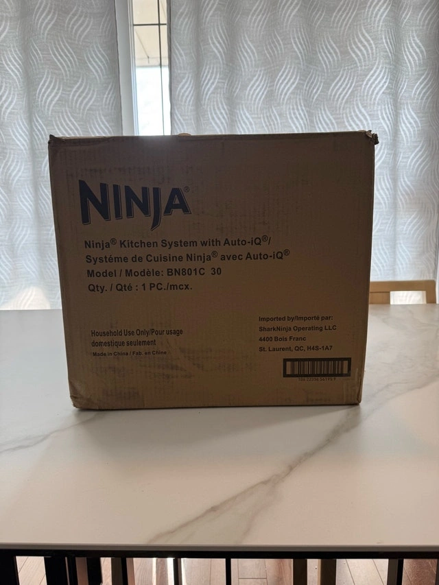 Never opened. Factory sealed. Powerful 1400W motor crushes ice and blends with ease. 72oz (2L) Total Crushing Pitcher is perfect for large batches. 1.8L Processor Bowl is ideal for chopping, purees & up to 2 lbs of dough. Pro Extractor Blades extract nutrients from fruits & vegetables. Features 3 speeds with push-button controls and stainless steel blades. Voltage: 120V (Canadian Version). Color: Black/Silver. Dimensions: 45.7W × 18.8D × 24.5H cm. Weight: 6.12 kg. Perfect for smoothies, frozen drinks, meal prep, dough, and everyday kitchen use. Cash accepted. Cashless payment accepted.