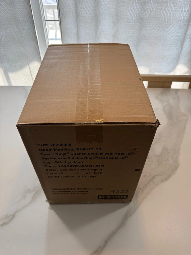 Never opened. Factory sealed. Powerful 1400W motor crushes ice and blends with ease. 72oz (2L) Total Crushing Pitcher is perfect for large batches. 1.8L Processor Bowl is ideal for chopping, purees & up to 2 lbs of dough. Pro Extractor Blades extract nutrients from fruits & vegetables. Features 3 speeds with push-button controls and stainless steel blades. Voltage: 120V (Canadian Version). Color: Black/Silver. Dimensions: 45.7W × 18.8D × 24.5H cm. Weight: 6.12 kg. Perfect for smoothies, frozen drinks, meal prep, dough, and everyday kitchen use. Cash accepted. Cashless payment accepted.