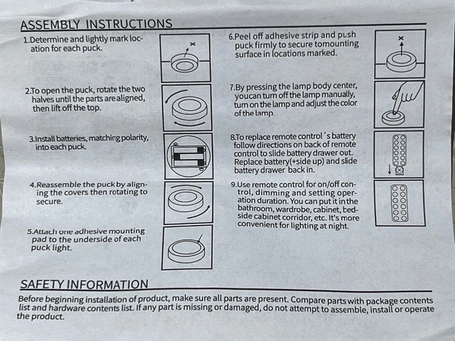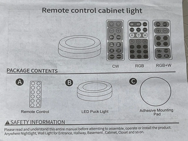 Cabinet Puck LED Lights 4 Colors 6pcs w Remote - $20