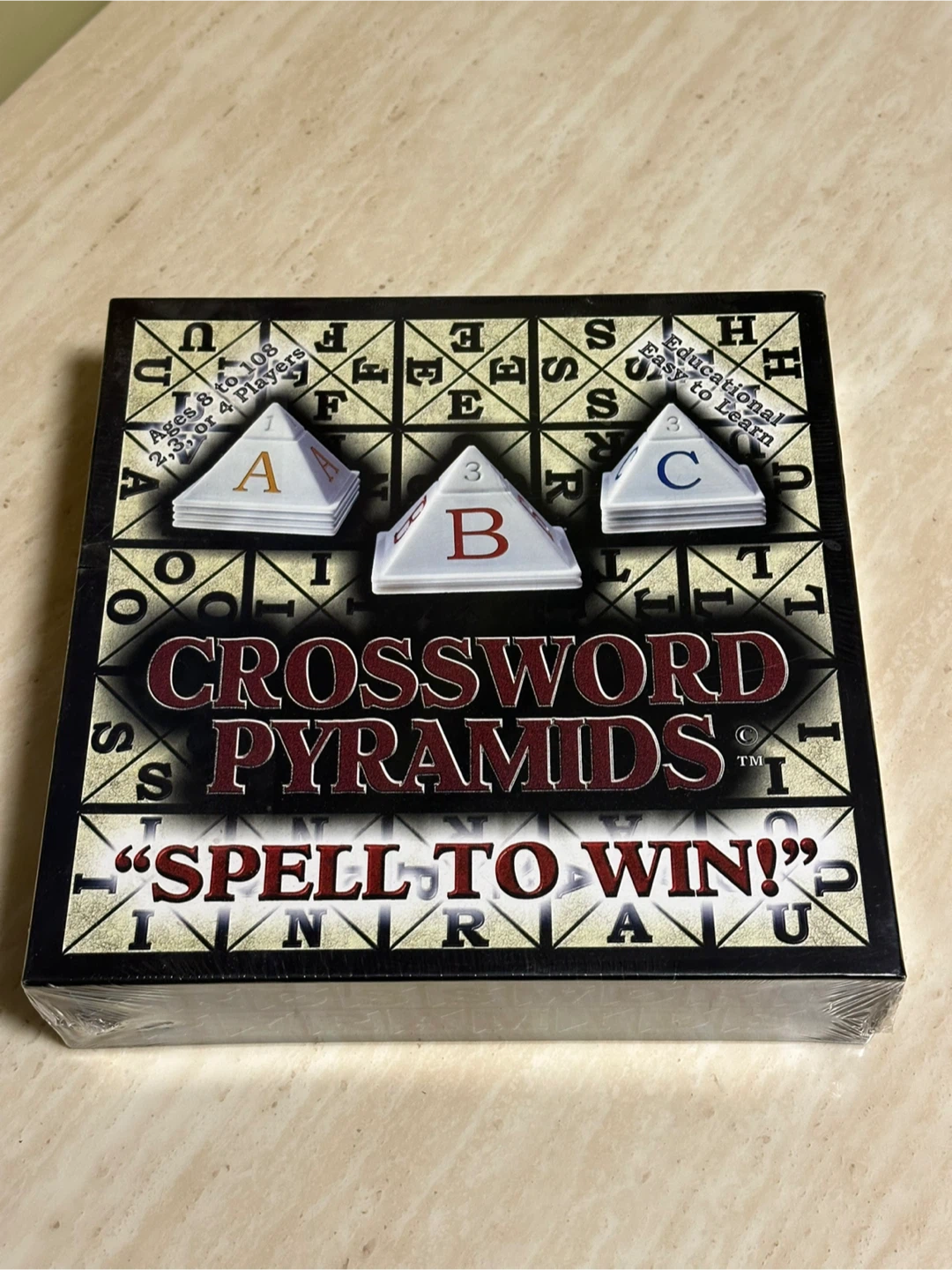 Selling a brand new, sealed Crossword Pyramids board game! It's perfect for family game nights and educational fun. Suitable for ages 8 and up, and designed for 2 to 4 players. Get ready to spell to win!