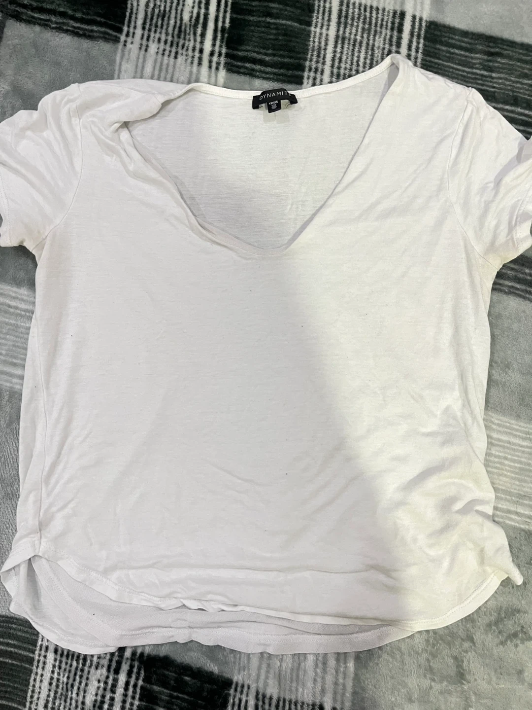 Selling a Dynamite white V-neck T-shirt in size medium. It's in great condition and perfect for everyday wear. Simple and stylish.