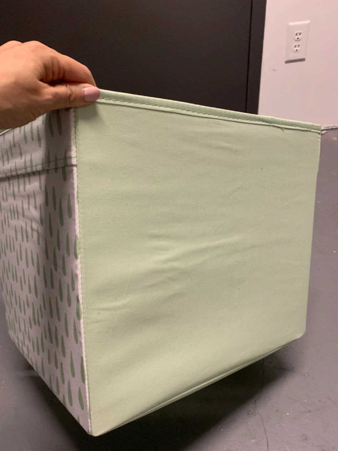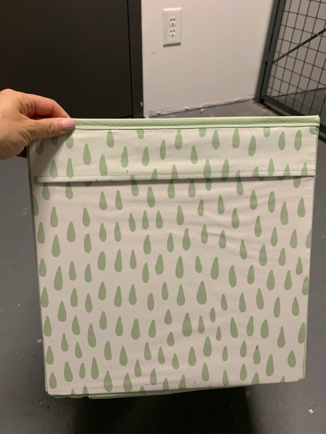 Selling a mint green storage box! It's in great shape and perfect for organizing your space. The box has a cute raindrop pattern on the sides.